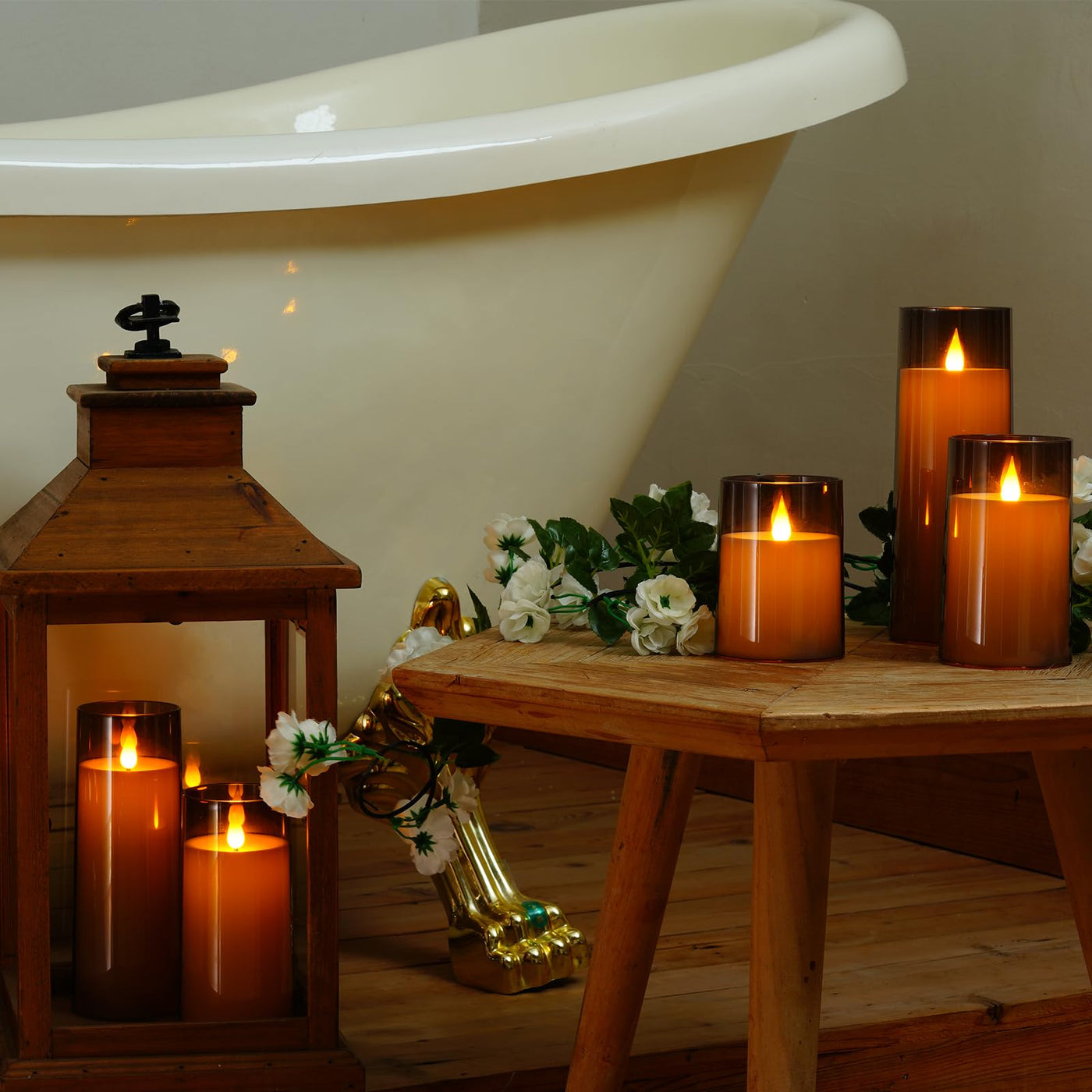 Raycare Grey Flameless Candles With Remote And Timer, 5 Pcs Battery Operated Acrylic Flickering Led Pillar Candles For Romantic