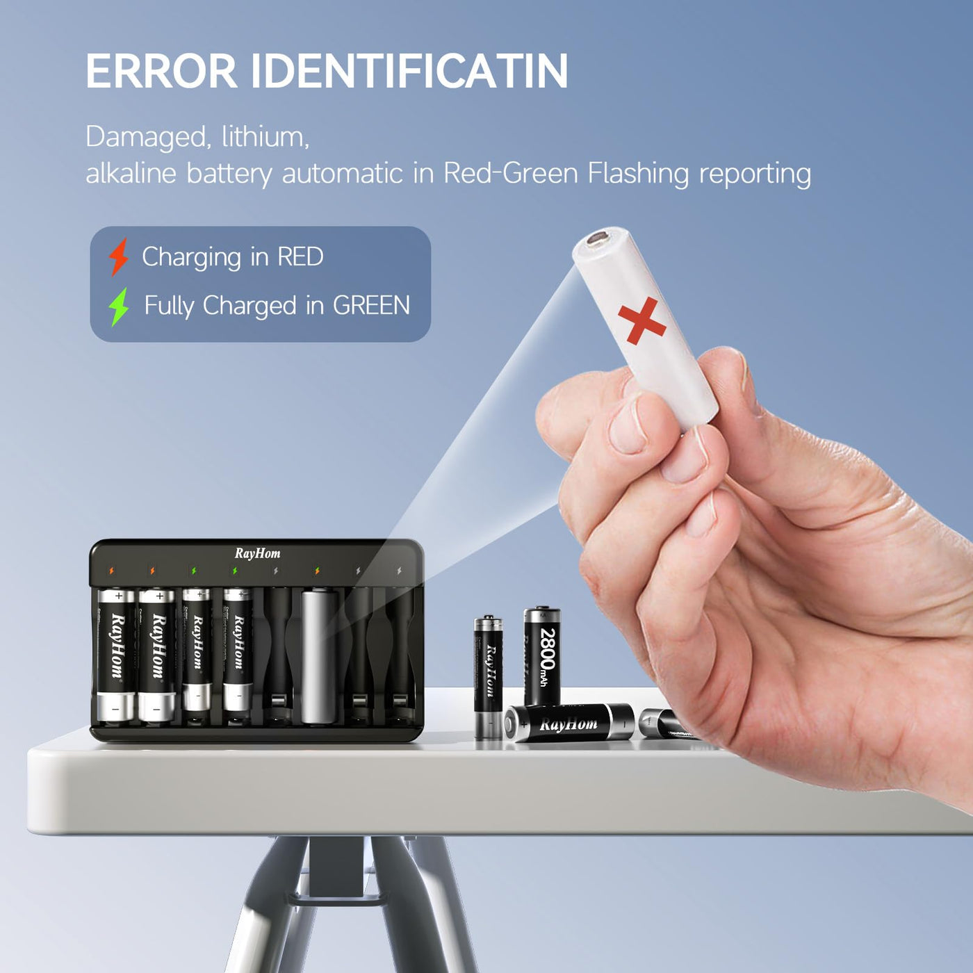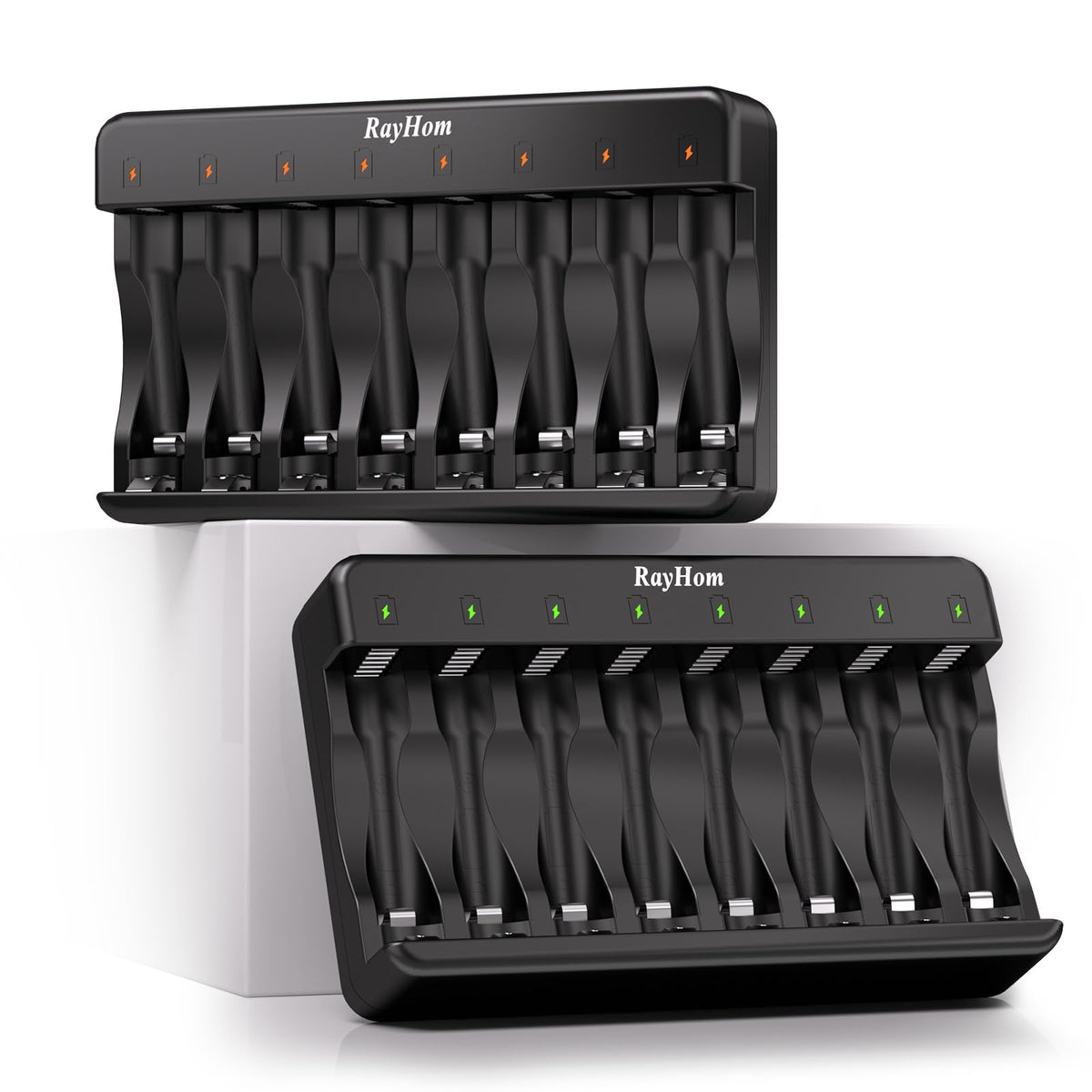 Rayhom Aa Aaa Battery Charger 2 Pack 8 Bay Smart Individual Charger For Ni Mh Ni Cd Rechargeable Batteries