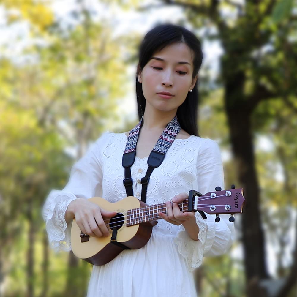 We Offer A Professional Package Sale For Ukulele Player: An Ukulele Strap And An Ukulele Capo The Capo Is Made Of Aircraft Zinc Alloy, It Is Light And Beautiful For Your Ukulele The Memory Spring Is Very Strong To Press Down Your Strings With No Buzzing The Strap Is A Loop Style That You Do Not Even Bother To Install A Strap Button On Your Ukulele Just Latch It Onto Your Ukulele And Ready To Play Note : Unlike The Two-Point Shoulder Strap, When You Use A Neck Loop Style Ukulele Strap, You Need To Keep Hold Of Your Ukulele While You Are Playingbr It Will Tip Forward If You Let It Go Because The Hook Clip On To The Edge Of The Sound Hole Specifications:- Package Include: A Button-Free Cross-Chest Ukulele Strap An Ukulele Capo - Material Capo: High Quality Zinc Alloy Silicon Rubber Pad - Material Of The Strap: Cotton - Strap Length Range: 58 Cm To 67 Cm - Width: 4 Cm - Package Size: 32618 Cm - Weight: 100 G