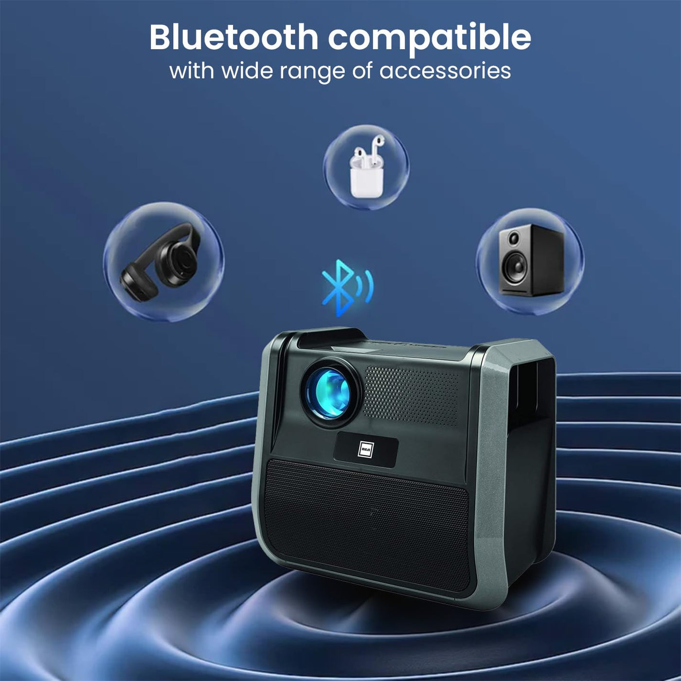 Watch Movies On The Go! Portable Home Theatre Projector Delivers True-To-Life Color Projections On Virtually Any Flat Surface Great For Use On A Projector Screen, Wall, Side Of The House Or Ceiling Two Stereo Speakers Deliver Powerful Audio Blutooth(R)Receiver Allows You To Connect To Other Devices 3.97 (10 Cm) Lcd Projection Up To 150 Picture Size (30 To 150 Maximum Picture Size And 37 To 100 Optimal Picture Size) Supports 1080P (Via Hdmi Input), 1080I, 720P, 576I, 480P, And 480I Native Resolution 800 X 480 Input: Hdmi / Av / Usb Supported Video Formats: Mpeg1 / Mpeg2 / Mpeg4 / Rm / Avi / Mov / Mjpeg / Mkv Supported Audio Formats: Mp3 / Wma Supported Picture Formats: Jpg / Bmp / Gif / Png Built-In Lithumbattery8800Mah Speaker Output Power: 8W (Mono) Ideal For Dark Viewing Environments For Optimal Viewing Performance. Accessories: Remote Control, Ac Power Adapter