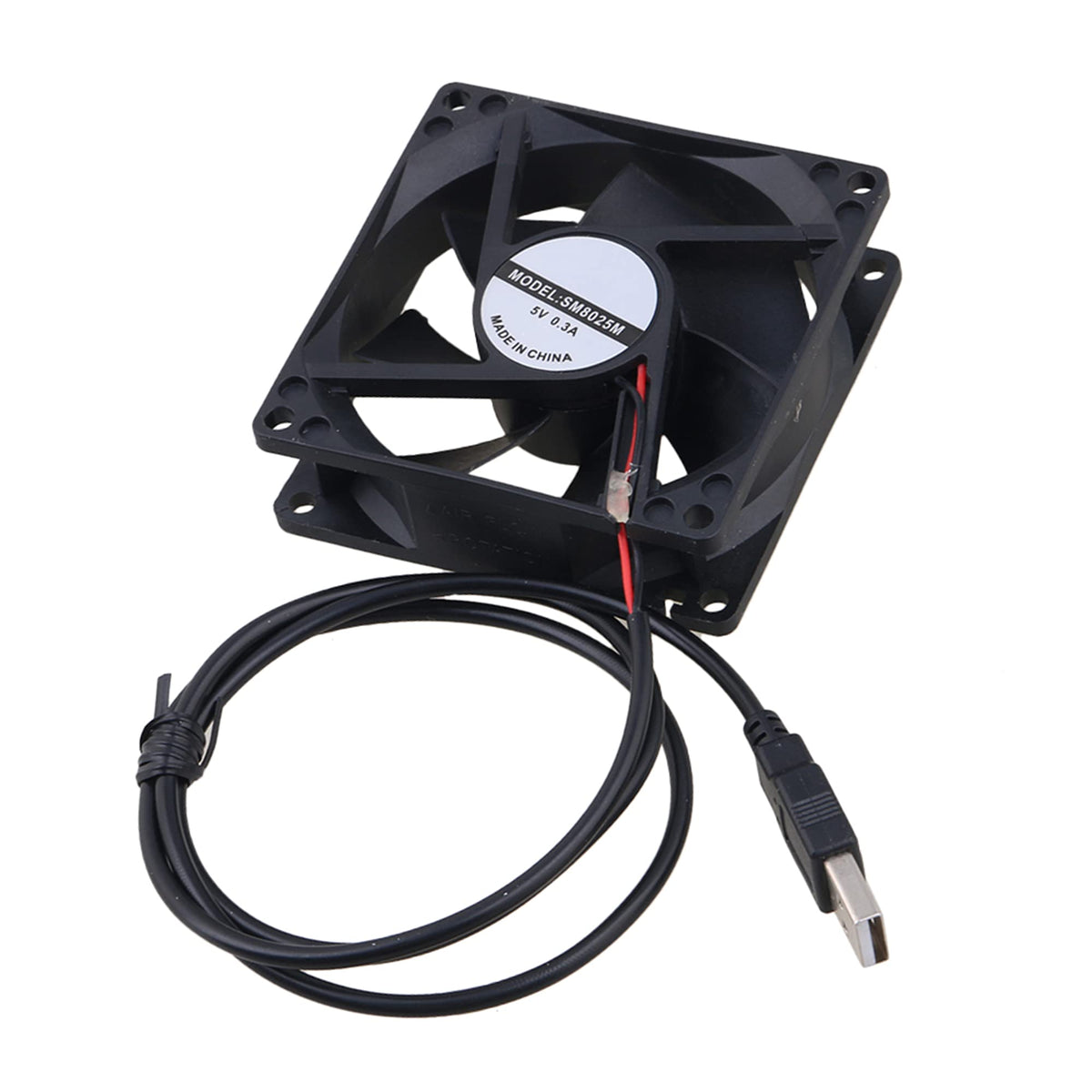 Material:Plastic,Wire Rod And Metal Color:Black Model:8025 Voltage:5V Fan Speed:1300Rpm5% Fan Noise(Db-A):25.0Dba Connector Type:Usb Power Cable Length:About 42Cm/16.53Inch Size:80X80X25Mm/3.5X3.5X1In(Lxwxh) Weight:79G Package Include: 1 X Usb Computer Case Cooling Fan