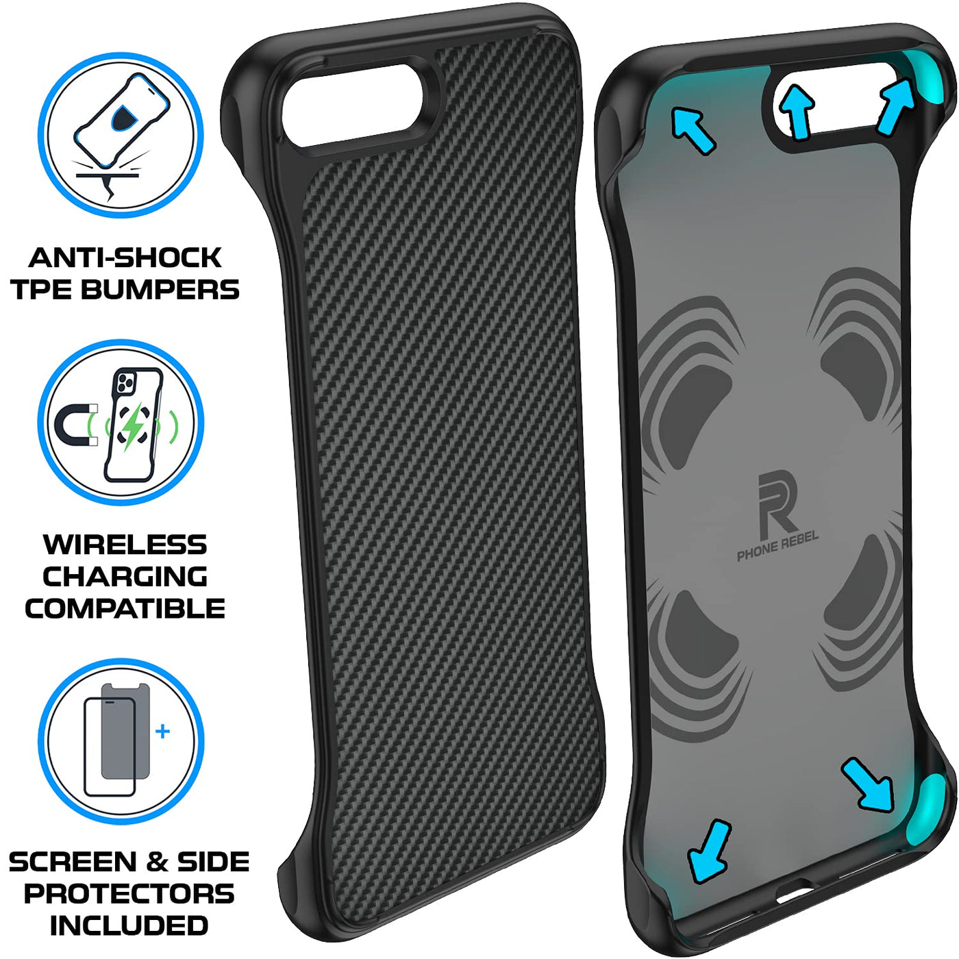 Rebel Iphone 8 Plus Case, 7 Plus Case Series Gen 1 Exposed Sides For Comfort, Protective & Shockproof, Slim Fit Frameless, Scree