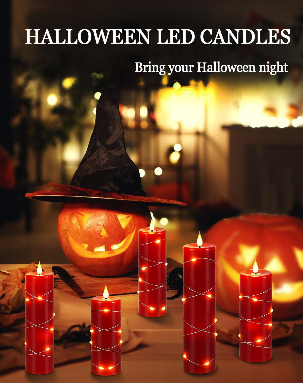 Fanzir Red Flameless Candle With Remote Control Timer Led Candle With String Lights Battery Powered Flameless Candle4'' 5'' 6'' 7'' 8'' Candles Of 5 Pcs For Christmas Or Special Festivals Decorations