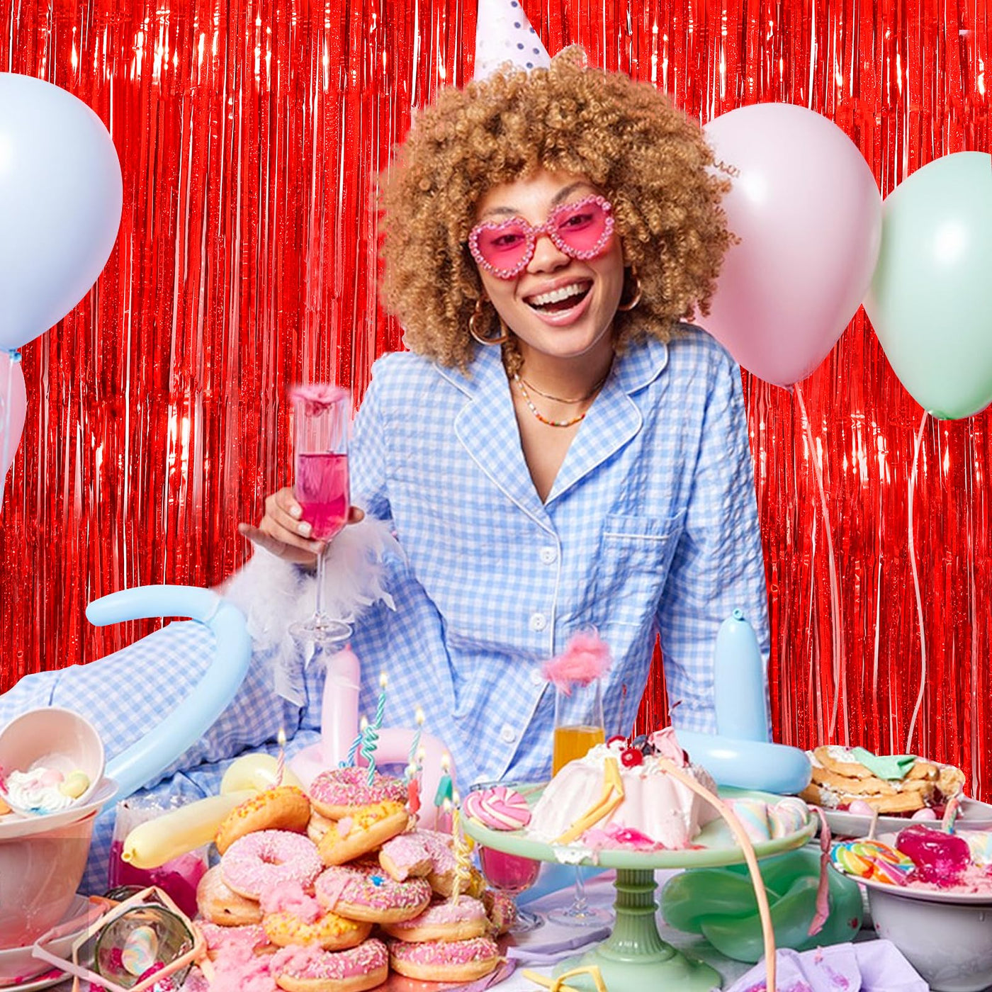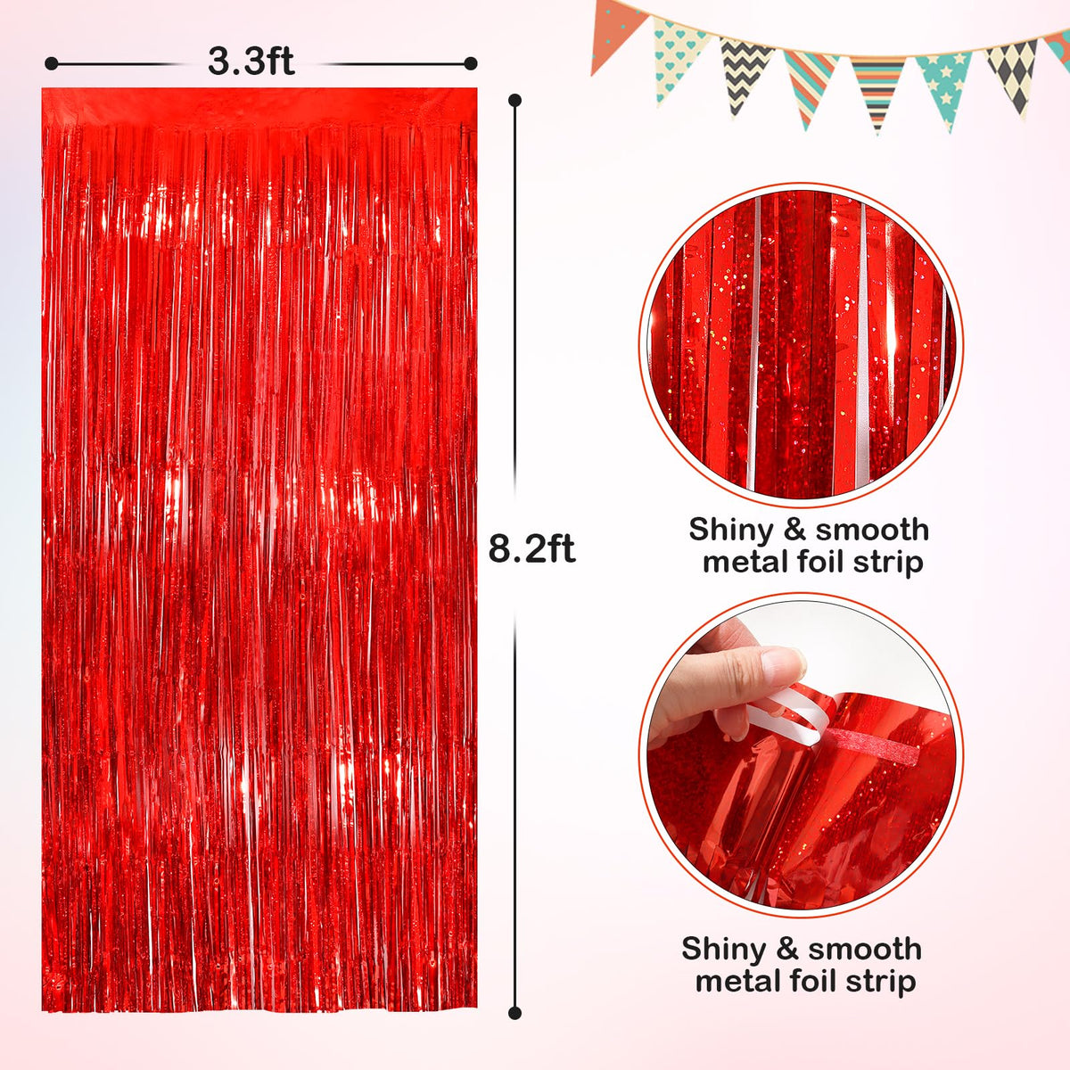 Red Metallic Tinsel Foil Fringe Curtains, 2 Pack 3.3X8.3 Feet Party Streamer For Birthday Party Decorations, Halloween Decor, Fo
