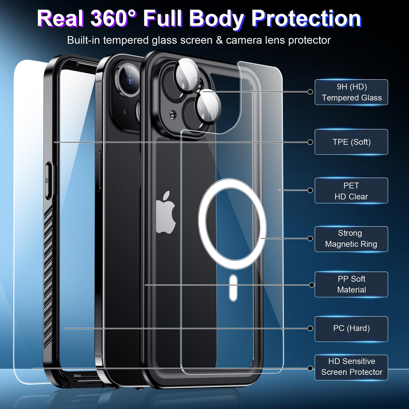 Red2Fire 2024 New Designed For Iphone 14 Case Waterproof,[Compatible With Magsafe][Built In Camera & Screen Protector][Full Body