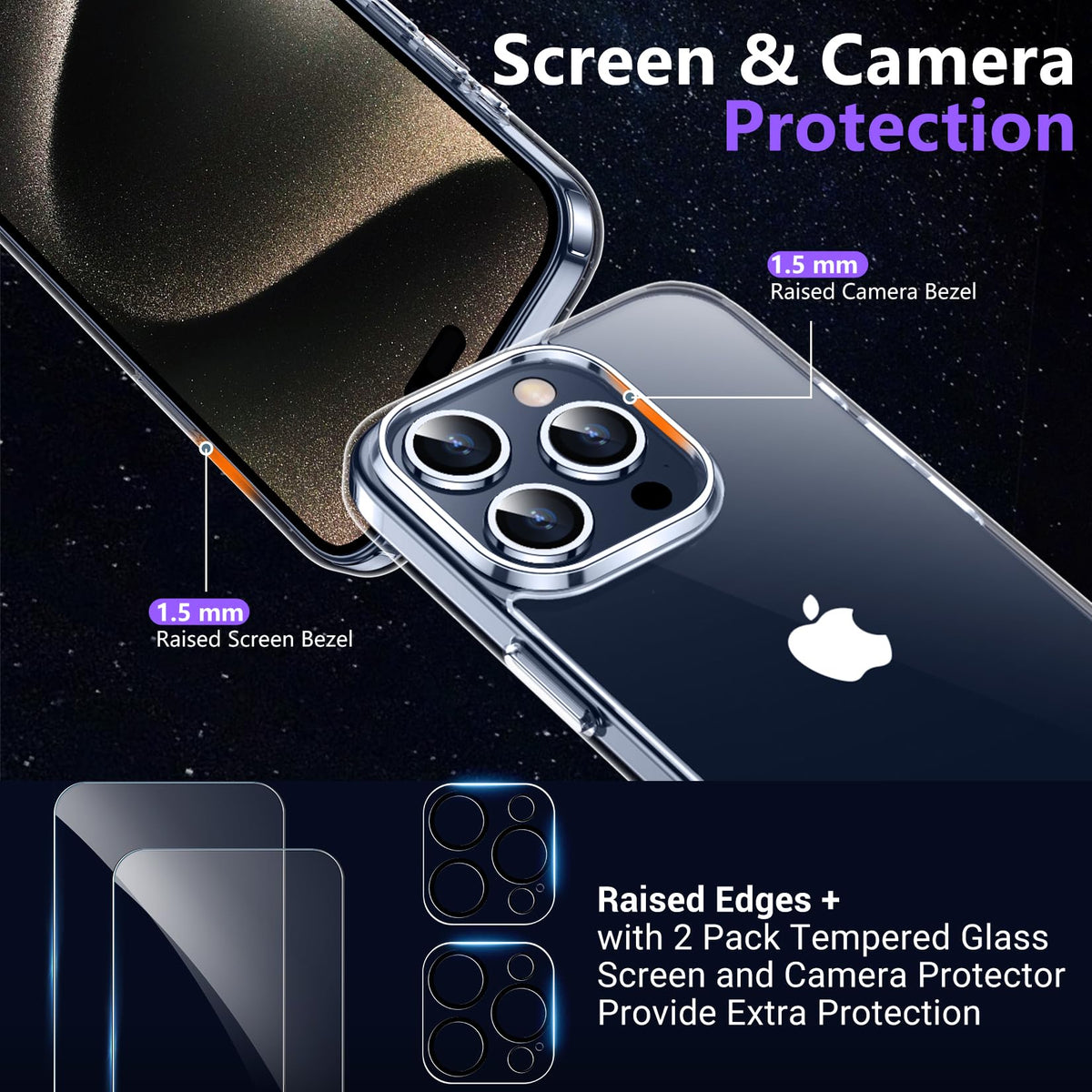 Red2Fire New Designed For Iphone 15 Pro Max Case Clear, [Clear & Non Yellowing][2Pcs Tempered Glass Camera Protector & Screen Pr