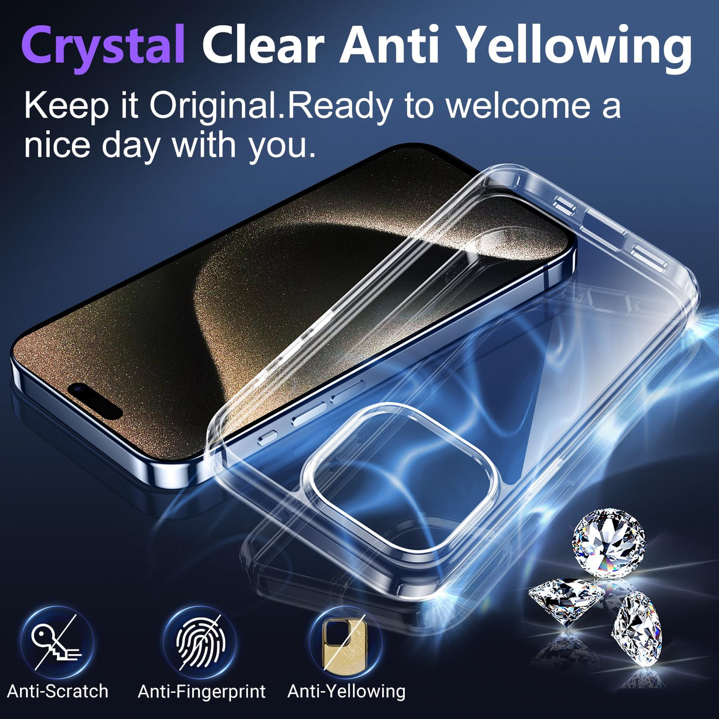 Q: How does the anti-yellowing technology work in this case?A: The case features advanced anti-yellowing technology that includes an anti-oxidation coating and blue molecule technology, effectively resisting 99.9% of yellowing caused by UV rays and sweat, ensuring it maintains its clarity over time.