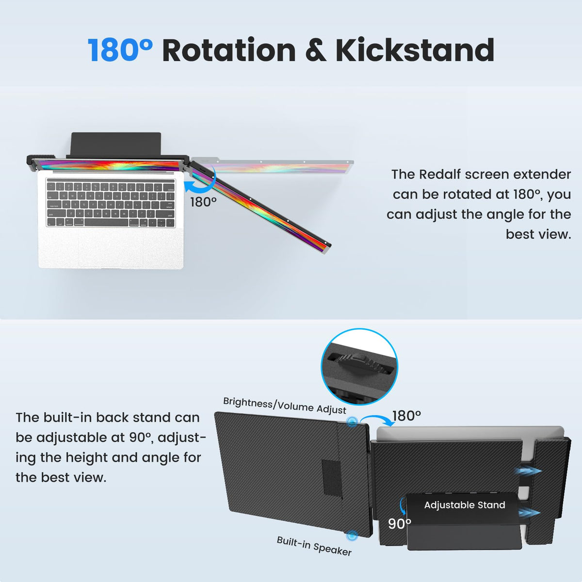 Q: Can I adjust the viewing angle of the monitor?A: Absolutely! The Redalf Portable Monitor features a 180° rotatable and foldable design, allowing you to adjust the screen to your preferred viewing angle for enhanced comfort during use.