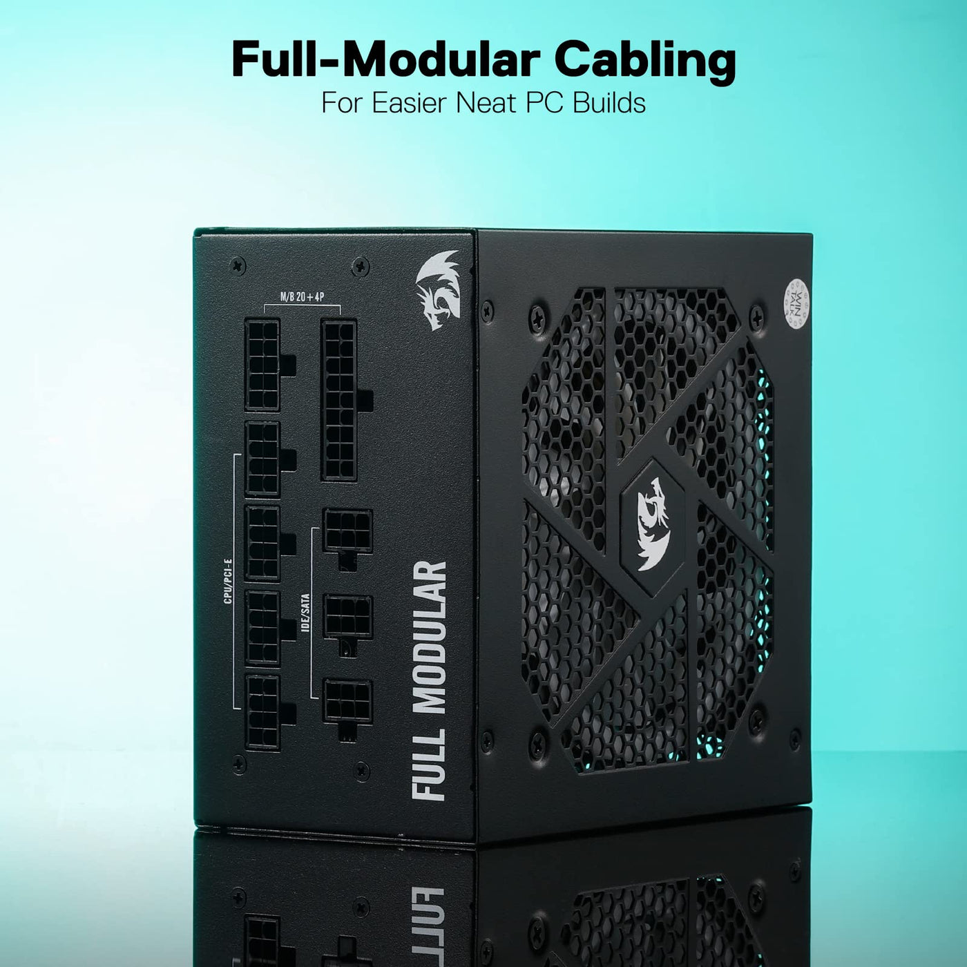 Redragon Psu013 80+ Gold 650 Watt Atx Fully Modular Power Supply W/ 80 Plus Gold Certified, Compact 160Mm Size & Rgb Low Noise Smart-Eco 0 Rpm Fan, 100% Japanese Capacitors, Full Mod Cables, Black