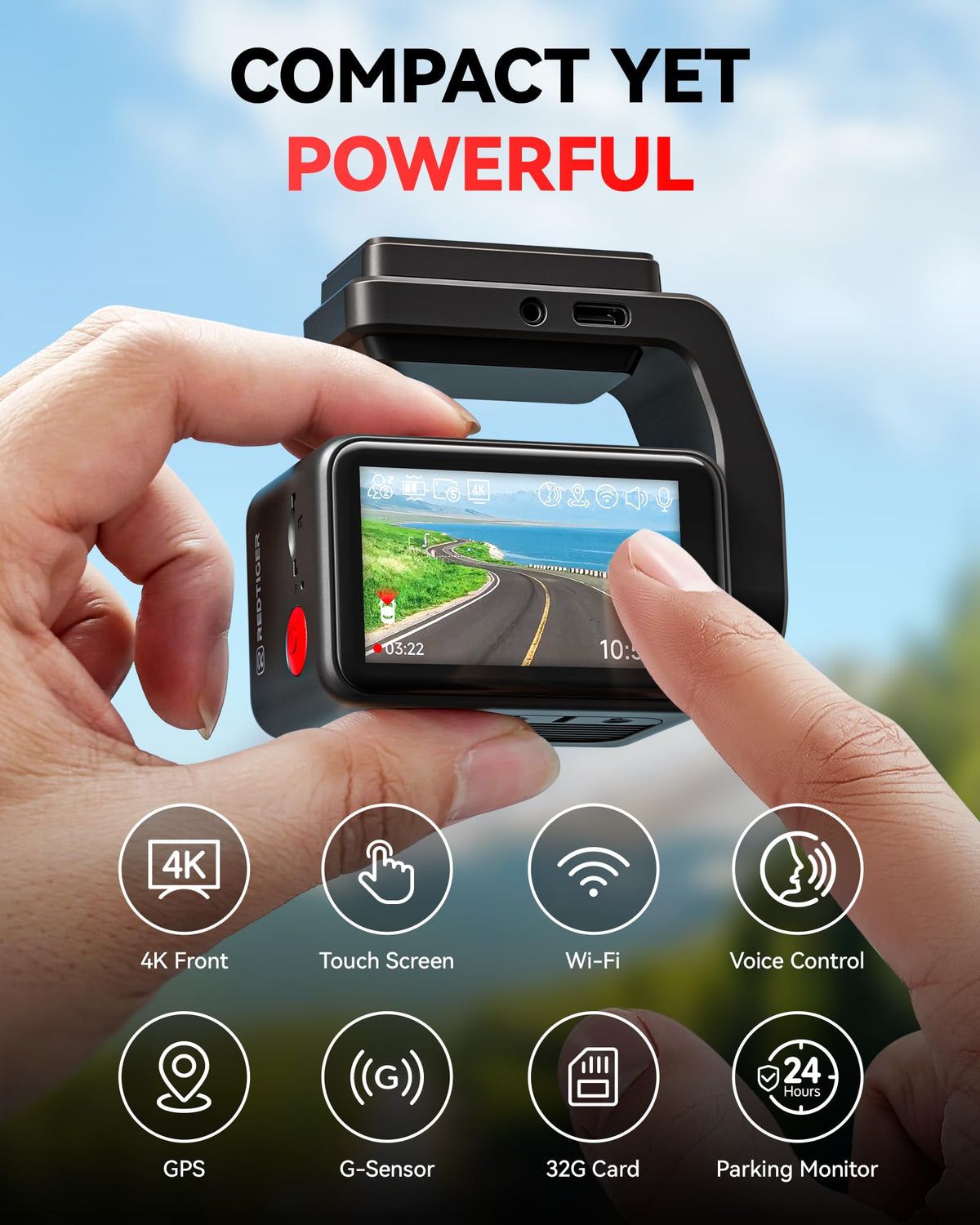 Redtiger F4 4K Dash Cam Front, 2.2 Inch Mini Car Camera, 2160P Uhd Touch Screen, Voice Control, Included 32Gb Card, Night Vision