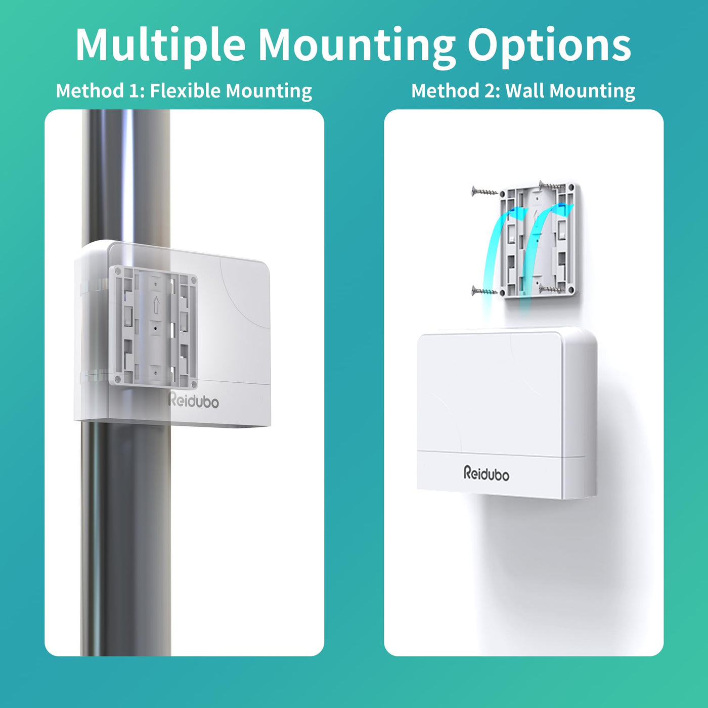 Q: What mounting options are available for the Reidubo outdoor PoE switch?A: The switch comes with mounting accessories including plastic expansion tubes and screws, allowing for both wall mounting and pole mounting to suit various installation needs.