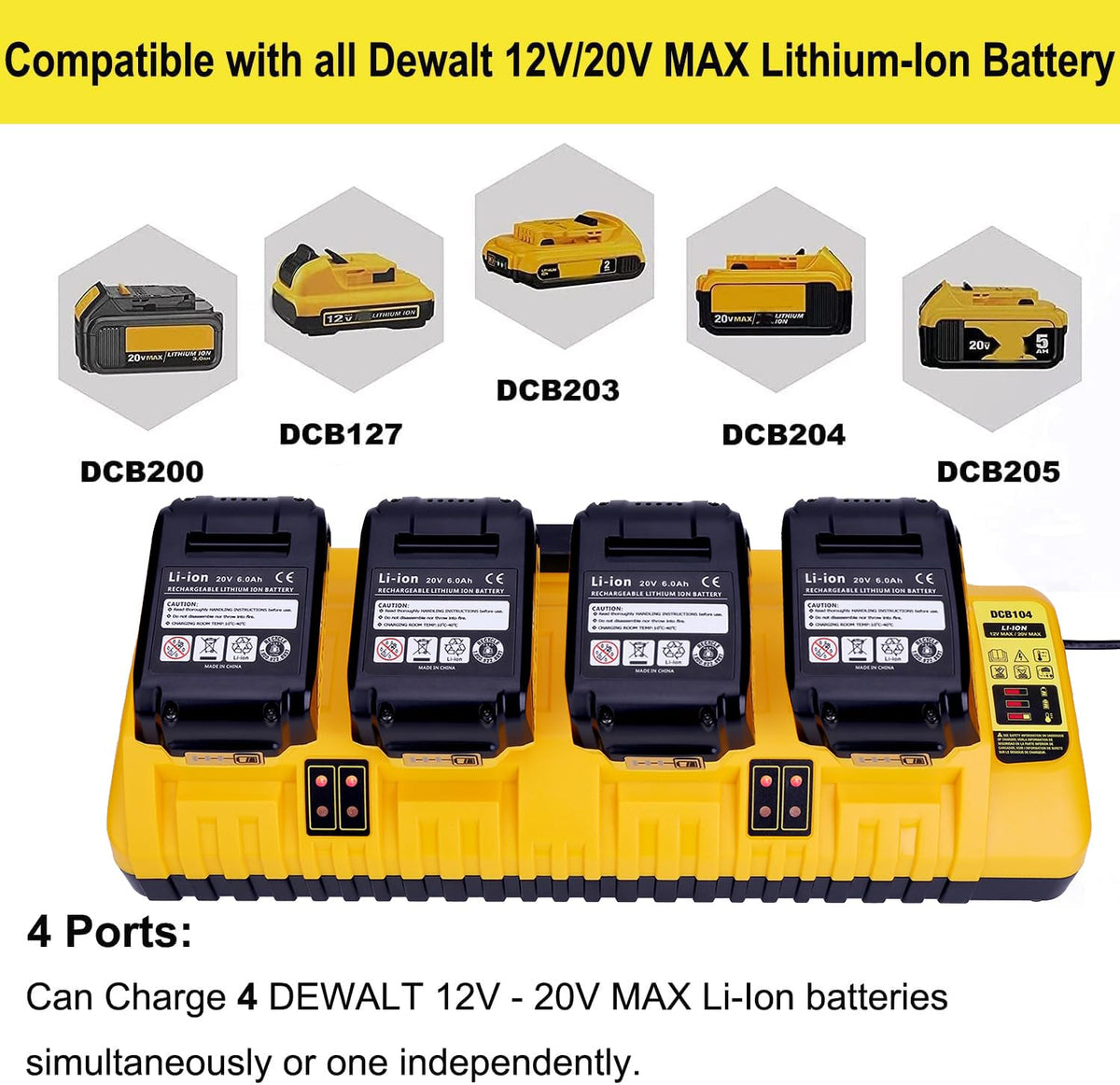 Replacement For 12V 20V Max Battery Charger Station Dcb104, Compatible With Dcb124 Dcb126 Dcb200 Dcb203 Dcb204 Dcb206 Dcb230