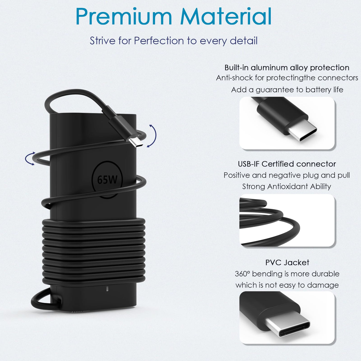 Replacement For Dell Inspiron Charger Usb C,65W Ac Adapter For Dell Inspiron 16 7620 2 In 1/14 7420 7425 Business Laptop,Dell In