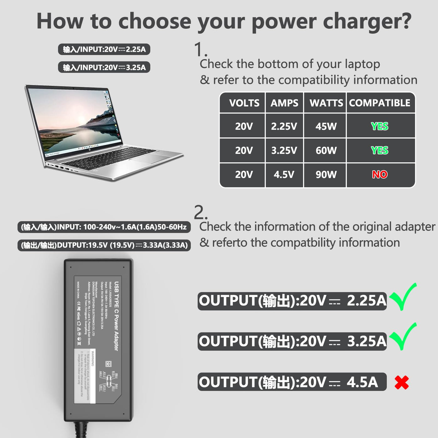 High Performance Charger:Get Fast And Efficient Charging With The Dell 65W Laptop Charger Usb C, Featuring An Input Voltage Of Input:Ac 100-240V~1.5A 50-60Hz. Output: 5V~3A Or 9V~3A Or 12V~5A Or 15V~4.33A Or 20V~3.25A 65W Max 45W Compatible. Compatible With Usb Type C, This Charger Also Compatible With Dell Type C,Hp Chromebook Charger Type C,Acer Usb,Samsung Type C,Asus Usb C | Compatible With Dell Laptop Charger:Dell Chromebook Latitude 5420 5320 5520 3500 3400 3100 3300 5300 5400 5500 7200 7300 7400 5190 2-In-1 P28T P29T P86F,Dell Xps 12 925 Dell Xps 13 9360 9350 9365 9370 9380, Dell Xps 13 Laptop, Dell Latitude 7275 7370 5175 5285 5290-2In1 7390-2In1 Series Laptop Charger | Compatible With Lenovo Chromebook Charger:Lenovo Chromebook 100E 300E 500E C330 S330 C340 S340 S345 C340-11 S340-14 C340-15 S345 S540 C740 C940 S940 14W 14E S345-14Ast Lenovo Yoga A485 T490S T590 C930 C940 C740 S730 720 730 730-13Ikb 730S 910 920 720-12Ikb 720S-13Ikb 730-13Ikb 910-13Ikb 920-13Ikb C930-13Ikb S730-13Iwl,Lenovo Thinkpad X1 Carbon T480 T480S T580 T580S X390 P52S,A275 A285 A475 A485 T470S T480S T580 T490 E480 E580 E485 E585 E490 E590 L480 X380 L380 L390 L480 L490 L580 L590 Laptop Charger | Compatible With Hp Chromebook Charger:Hp Chromebook X360 11 Series 11-Ae051Wm 11-Ae001Tu 11-Ae027Nr 11-Ae001Nr 11-Ae002Nr 11-Ae010Nr 11-Ae020Nr 11-Ae027Nr 11-Ae030Nr 11-Ze040Nr 11-Ae044Cl 11-Ae051Wm 11-Ae091Wm 11-Ae110Nr 11-Ae120Nr 11-Ae131Nr 13-V111Dx 13-V011Dx 13-W023Dx 13-W013Dx 13-Ae013Dx 13-Ac023Dx 14-Ca061Dx 14-Ca020Nr 14-Ca060Nr 14-Ca043Cl 14-Ca052Wm 14-Ca051Wm 15-De0010Nr 15-De0010Br 15-De0021Cl 15-De0035Cl 15-De0043Dx 15-De0517Wm X360 11 G1 Ee 11 G2 Ee 11 G8 Ee 11A G8 Ee 11 G7 Ee 11 G6 Ee 11A G6 Ee 13 G1 14 G1,14 G5 14A G5 14 G6 Usb C Laptop Charger | Compatible With Acer Chromebook Charger:Compatible With Acer Chromebook Spin Cb311 Cb314 Cb314 Cb514 Cb515 Cb714 Cb715 Cp5-471 Cp311 Cp315 Cp511 Cp713 R721 R751 R752T R851 Acer Chromebook Spin 11 13 R13 15 311 315 Cp311 Cp713 C933 Cb5-312T R751T Sf713 Sp714 Usb C Laptop Charger | Warranty And Customer Service:We Are Professional Notebook Power Supplier,We Dedicated To Providing A Variety Of High Quality Electronic Accessories,Our Laptop Charger Are 30 Days Free Refund Or Replacement,Friendly Customer Service