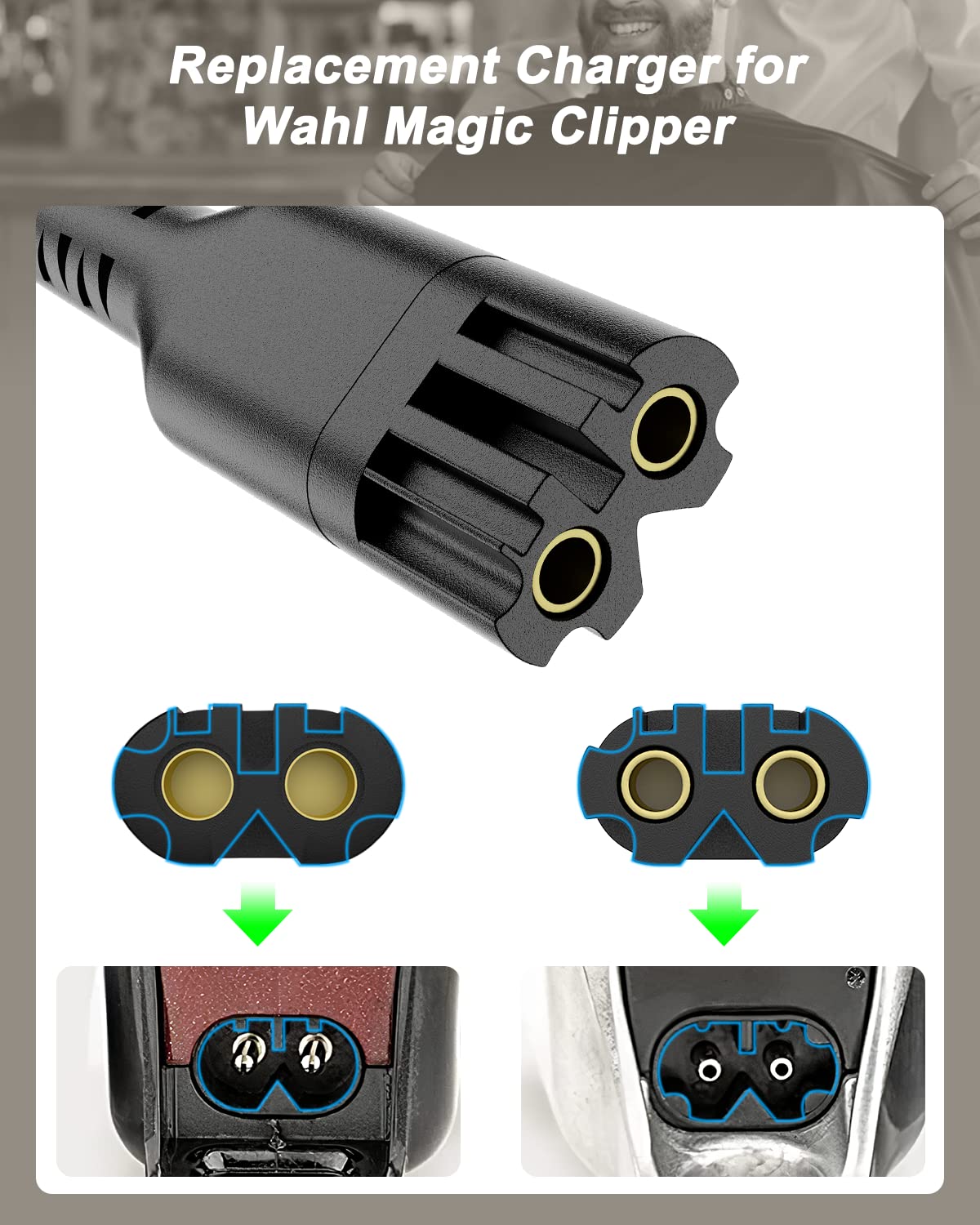 Replacement For Wahl Magic Clipper Cordless Charger Cord, 4V Clip Charger Compatible With Wahl 8164/8591/ 8148/8504, 5 Star Magi