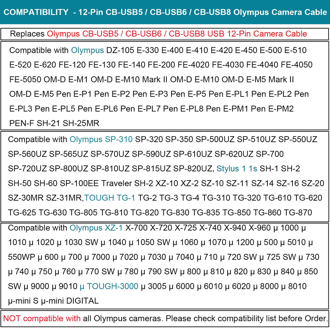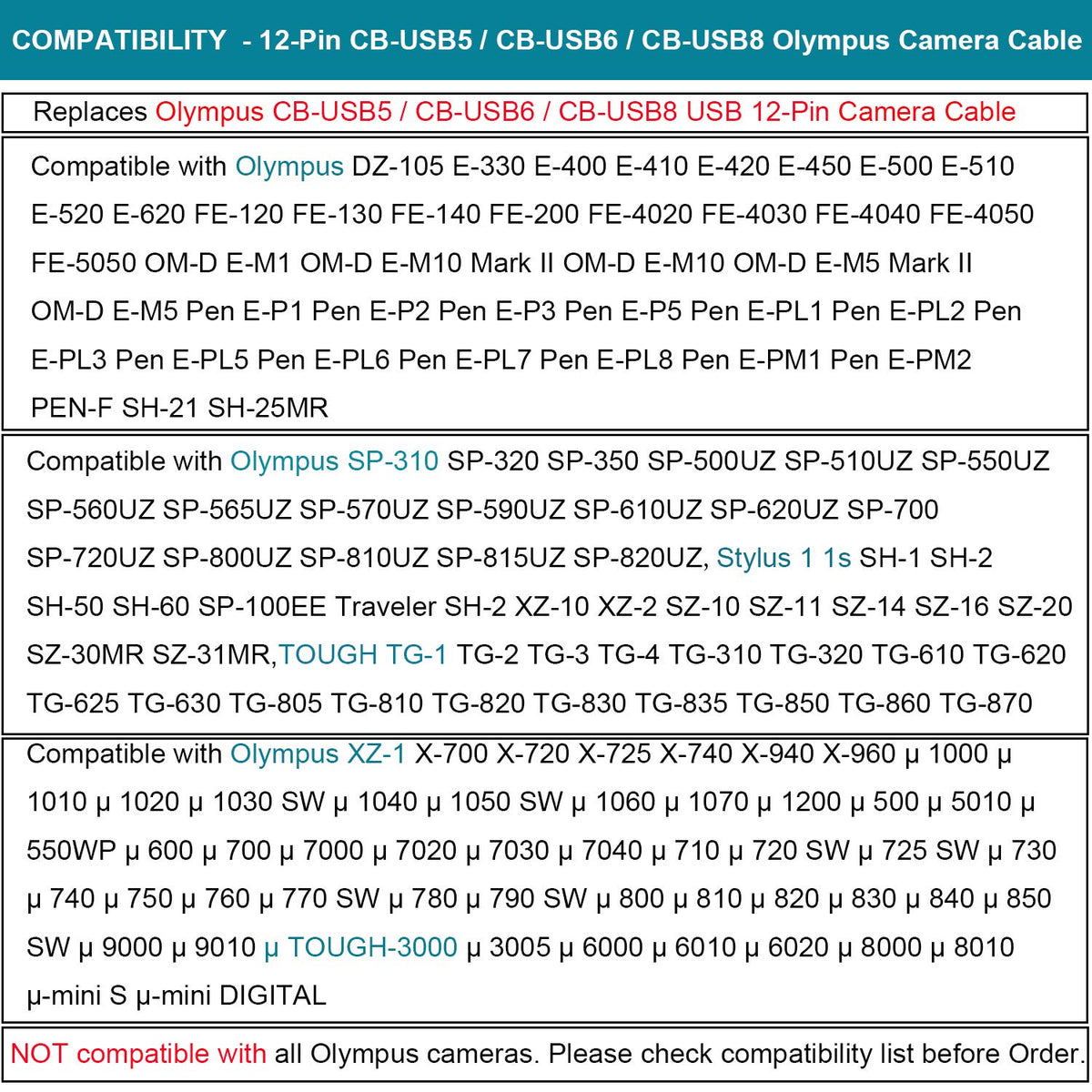 Maxllto Brand New,High Quality Cable Replaces Olympus Cb-Usb5, Cb-Usb6 And Cb-Usb8 Usb Data Cable For Olympus Cameras; This Cable Connects Your Digital Camera To Usb-Ready Computer, Usb Hub Or Photo Printer Dock For Pictures Transferring. Length - 5Ft (1.5 Meters); Great For As Replacement Cable Or Travel Backup Uses; Compatible With-Olympus Camera Dz-105 E-330 E-400 E-410 E-420 E-450 E-500 E-510 E-520 E-620 Fe-120 Fe-130 Fe-140 Fe-200 Fe-4020 Fe-4030 Fe-4040 Fe-4050 Fe-5050 Om-D E-M1 Om-D E-M10 Mark Ii Om-D E-M10 Om-D E-M5 Mark Ii Om-D E-M5 Pen E-P1 Pen E-P2 Pen E-P3 Pen E-P5 Pen E-Pl1 Pen E-Pl2 Pen E-Pl3 Pen E-Pl5 Pen E-Pl6 Pen E-Pl7 Pen E-Pl8 Pen E-Pm1 Pen E-Pm2 Pen-F Sh-21 Sh-25Mr Also Compatible With - Olympus Camera Sp-310 Sp-320 Sp-350 Sp-500Uz Sp-510Uz Sp-550Uz Sp-560Uz Sp-565Uz Sp-570Uz Sp-590Uz Sp-610Uz Sp-620Uz Sp-700 Sp-720Uz Sp-800Uz Sp-810Uz Sp-815Uz Sp-820Uz,Stylus 1 1S Sh-1 Sh-2 Sh-50 Sh-60 Sp-100Ee Traveler Sh-2 Xz-10 Xz-2 Sz-10 Sz-11 Sz-14 Sz-16 Sz-20 Sz-30Mr Sz-31Mr,Tough Tg-1 Tg-2 Tg-3 Tg-4 Tg-310 Tg-320 Tg-610 Tg-620 Tg-625 Tg-630 Tg-805 Tg-810 Tg-820 Tg-830 Tg-835 Tg-850 Tg-860 Tg-870 Compatible With Olympus Xz-1 X-700 X-720 X-725 X-740 X-940 X-960 1000 1010 1020 1030 Sw 1040 1050 Sw 1060 1070 1200 500 5010 550Wp 600 700 7000 7020 7030 7040 710 720 Sw 725 Sw 730 740 750 760 770 Sw 780 790 Sw 800 810 820 830 840 850 Sw 9000 9010 Tough-3000 3005 6000 6010 6020 8000 8010 -Mini S -Mini Digital Package Includes: 1 X 5Ft Usb Olympus Camera Cable By Maxllto.(This Is Not Compatible With All Olympus Cameras. Please Check Compatibility List Before Order) Please Confirm Before Purchasing, This Cable Is Not Suitable For Olympus E-Pl9, E-Pl10, Tg-5, Tg-6, Tg-Tracker, Em1X, Em1 Mark Ii, E-M5 Mark Iii, E-M10 Mark Iii, Sz-15 Fe-150 190 220 230 240 250 280 290 310 320 340 350.