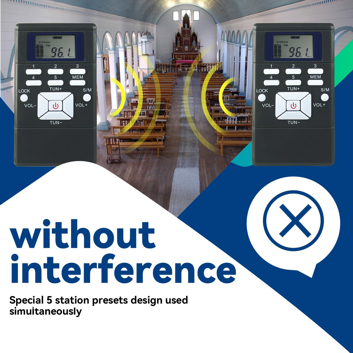 If You Are Looking A Radio For In-Ear Monitors At Church For The Minister Or In Civic Group Meetingsif You Are Looking At Using This For Our Small Nursing Facilityor You Needed For Short Range Transmission Within A Large Conference Roomit With Mono / Stereo Selectable,Crisp And Clear Sound,Good Chose For Bilingual Translationsideal Applicationsguided Toursfactories, Museums, Tourist Attractions, Zoos & Theme Parks, Cruise Ships & Buses, Schools, Meetings & Lectures, Employee & Dealers Training, Hotels And Resorts, Special Events.Assistant Listeningeducational Institutions, Corporate Meetings, Training And Seminars, Theaters, Governmental Agencies, Houses Of Worship, Conventions And Auditoriums.Language Interpretationcourtrooms, Educational Institutions, Conferences Or Conventions, Houses Of Worship, Medical Facilities, Employee & Dealers Training, Hotels & Resorts.Powered By 2 Aaa Battery, Recharge Is Support If Your Aaa Battery Is Rechargeable5-Key Direct Tuning Preset Memory:Direct Tuning Keypad Allows You To Tune Into Any 5 Language Stations In Simultaneous Translation Meetingmono And Stereo Fantastic:Chose Mono And Stereo As You Needdsp (Digital Sound Processing) Technology:Improve The Radio Receiver Sensitivityoffer International Time 24 Hour Clockspecification:Sensitivity: