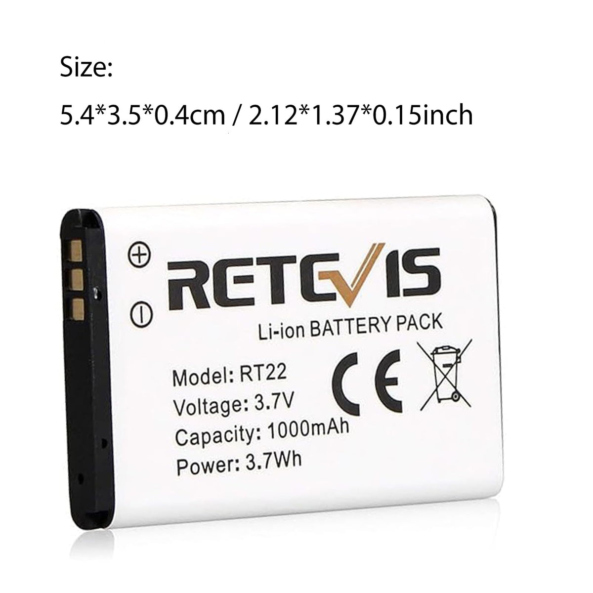 Retevis Rt22 Rt22S Rt15 Rt19 Battery Walkie Talkie Original Li Ion Battery 3.7V 1000Mah Compatible Rt22 Rt22S Rt15 Rt19 Wln Kd C1 Two Way Radio(2 Pack)