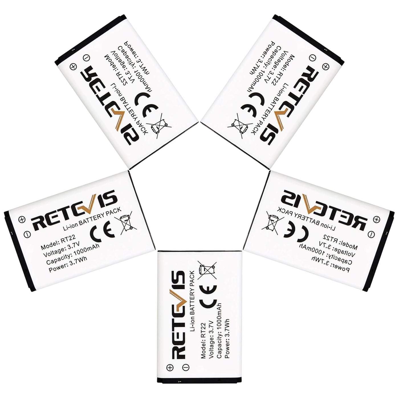 Package Includes: 5 X Retevis Rt22 Original Li-Ion Battery