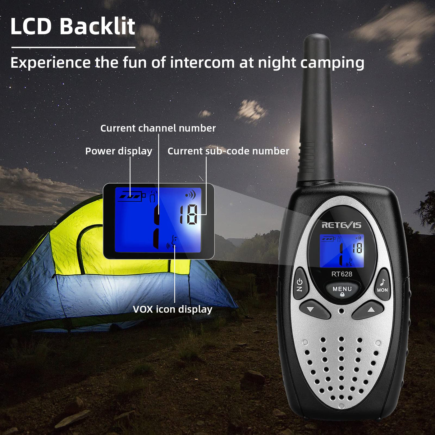 Q: Are the RT628 walkie talkies easy for kids to use?A: Yes, the Retevis RT628 walkie talkies are designed with kids in mind, featuring a simple interface and lightweight design. They are equipped with a VOX function, making it easy for children to talk without pressing any buttons.
