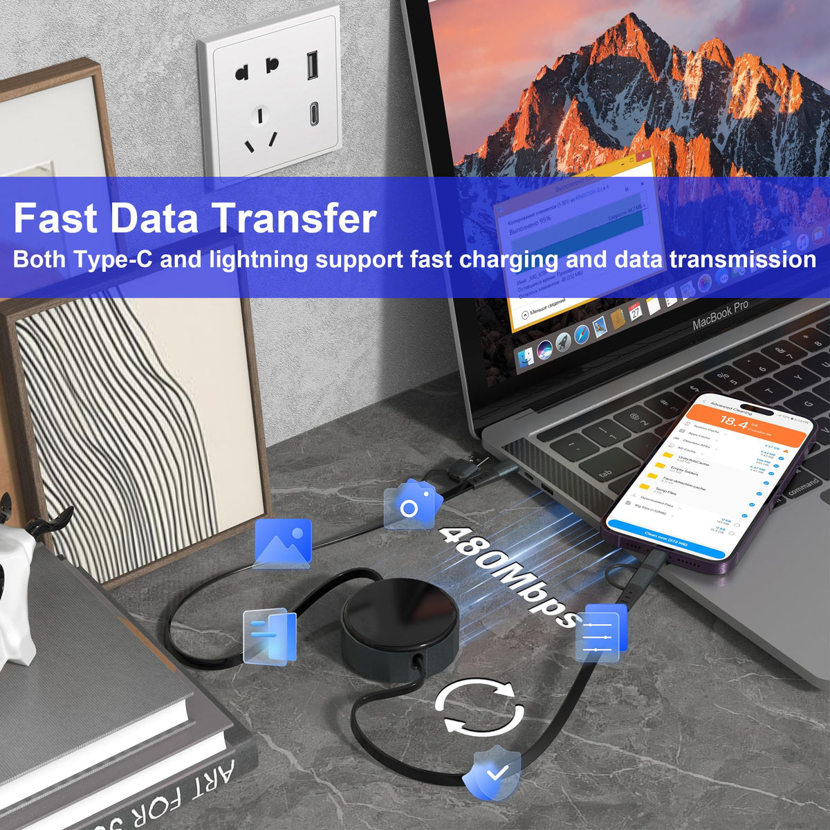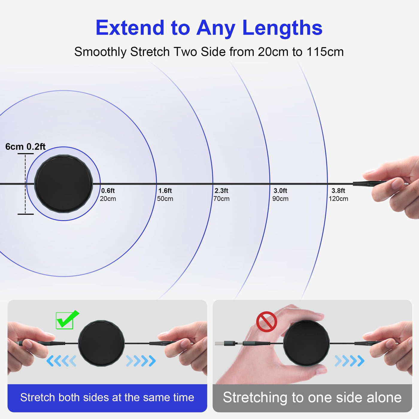 Retractable Iphone Charger Cord? Pd 60W Retractable Multi Usb Data Transfer Cable, Usb A + Usb C To Lightning/Usb C Connectors Support 60W Fast Charging And Data Syncing, The Charging Speed Reaches 480Mbps.? Compatibility With Usb-C To Lightning(Pd 27W) , Usb-C To Usb-C(Pd 60W), Usb-A To Lightning(12W/2.4A), Usb-A To Type-C Universal Cable, One Cable = Four Cables For You. Easy To Switch Between Lightning/Usb C/Usb A Connector.Widely Compatible:Type-C Port:Iphone 15Samsung Galaxy S23/S22/S21/S20/S10/S9/S9 Plus/S8/S8 Plus/S7/Note 8/9/10/A8/A8 Plus And Other Usb-C Devices.Lightning Port:Iphone 14/13/12/11/Pro/Xs/Xs Max/Xr/X/8/8Plus/7/7Plus/6/6Plus/5/5Se/5Ssturdy And Reliablethe Retractable Usb Cable Is Made Of High-Quality Materials For Durability And Reliability, With A 10000+ Bend Lifespan Could Withstand A Variety Of Daily Connection Needs And Long-Term Use.Easy To Carrythis Retractable Phone Charger Has A Retractable Feature That Allows You To Easily Adjust The Length As Needed. The Compact Form Fits Easily Into A Pocket, Bag Or Purse, Making It Easy To Take With You.Multi Charging Cablethis Retractable Charging Cable Has Two Interfaces (Lightning+Type-C), Which Can Charge For Two Electronic Devices At The Same Time, You Dont Need To Carry Multiple Charging Cables.