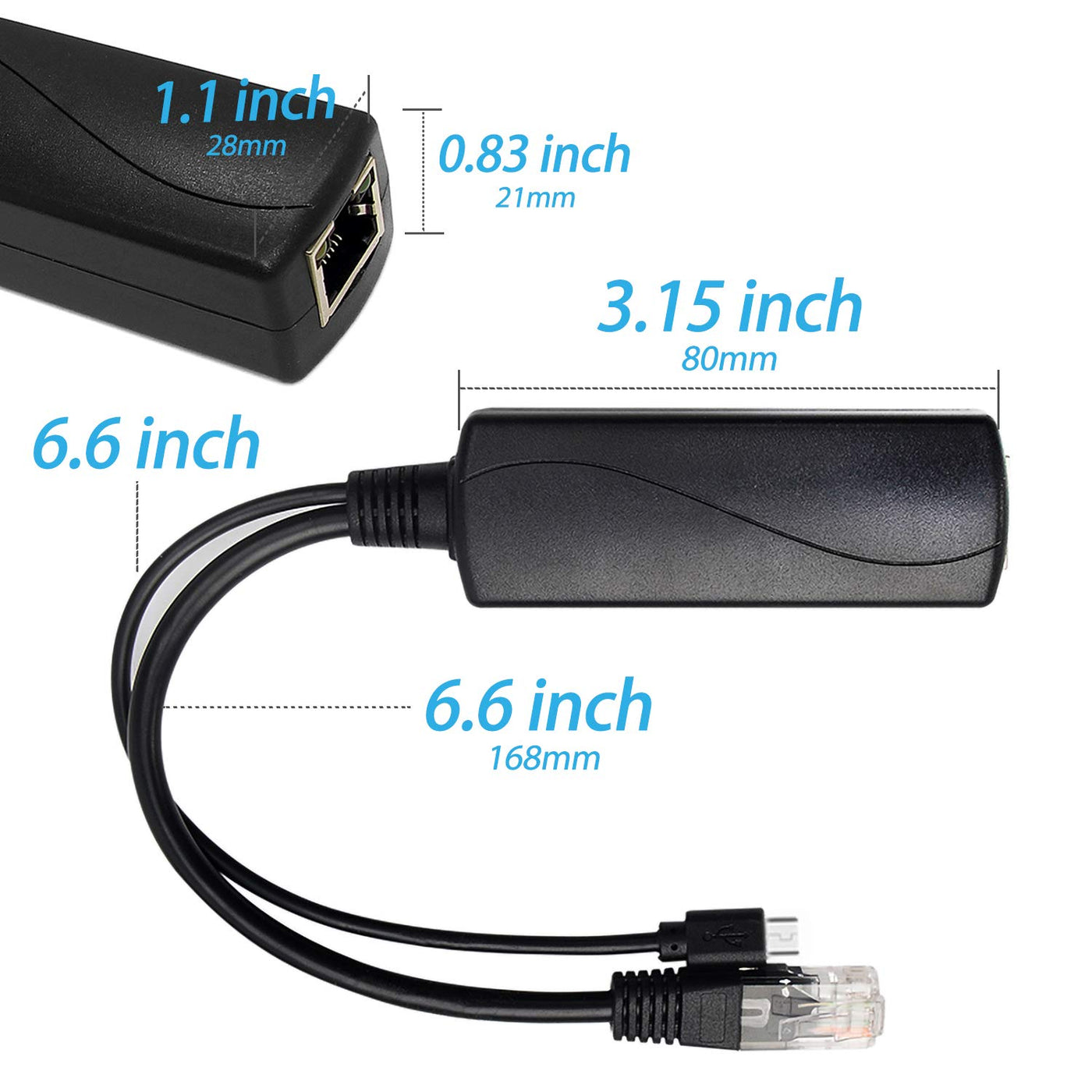 Revodata Gigabit Micro Usb Poe Splitter 5V 2.4A, Ieee 802.3Af Standard 10/100/1000Mbps For Raspberry Pi 3B, Google Wifi, Tablets