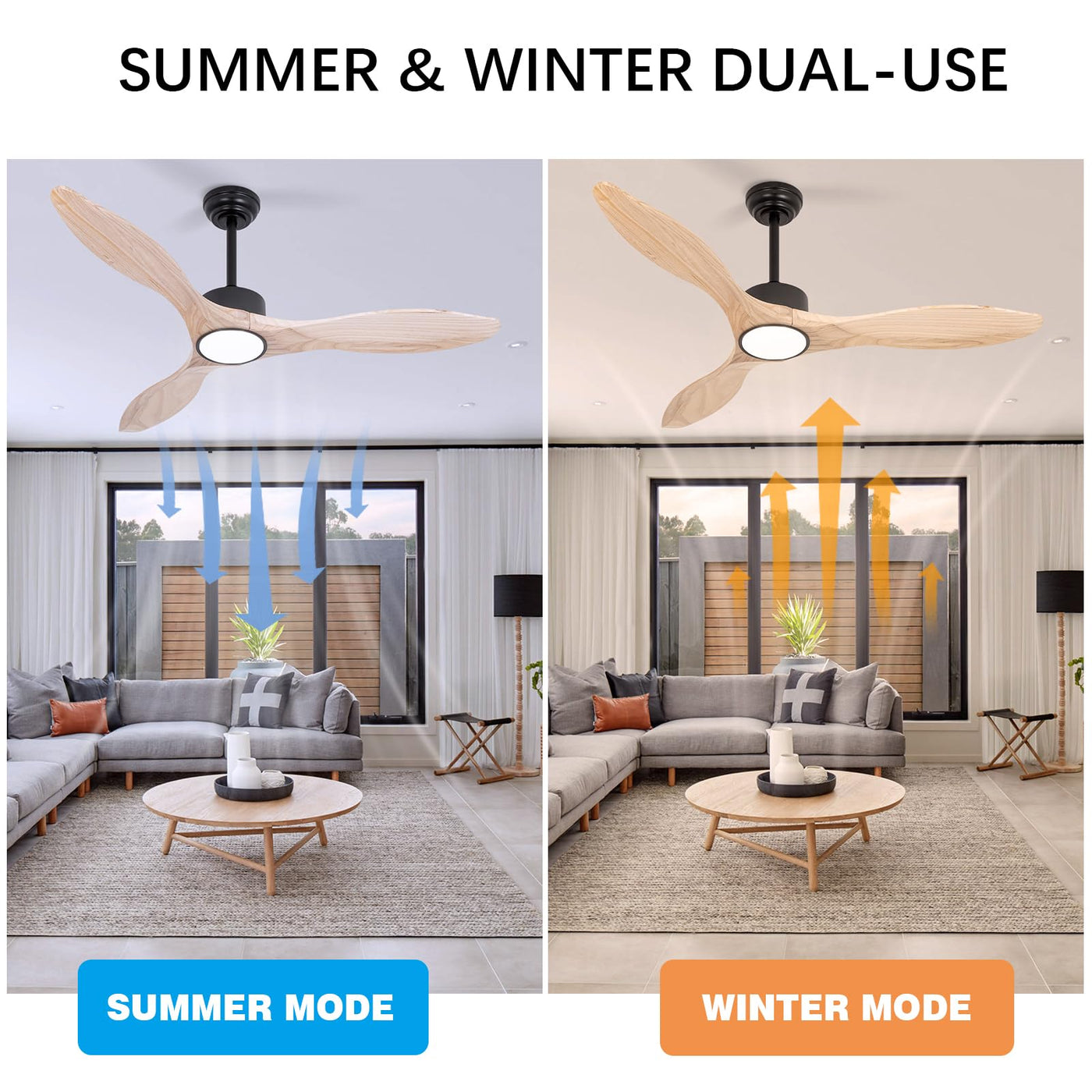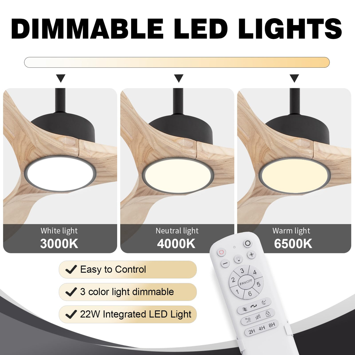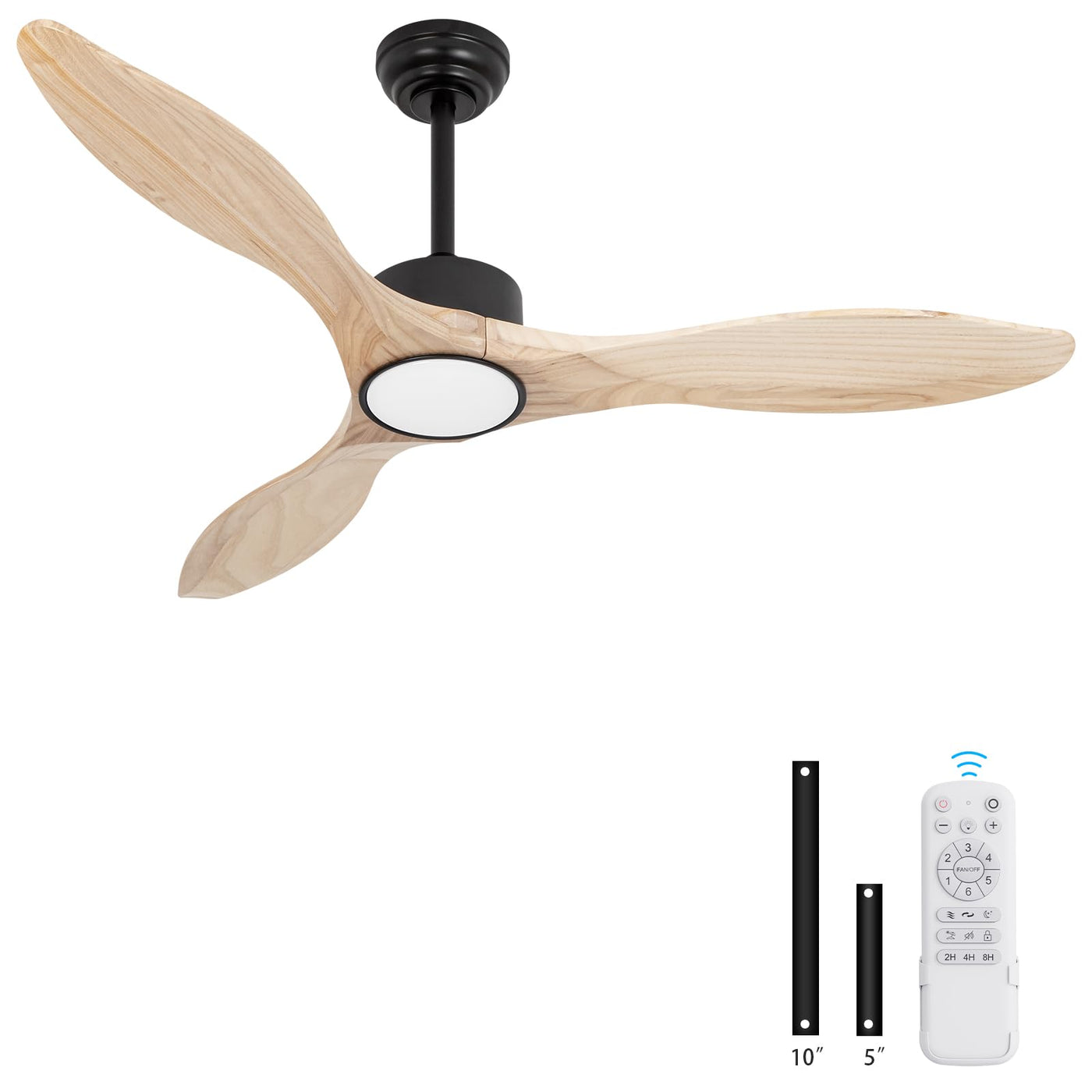 Revoici 52Inch Natural Wood Ceiling Fan With Light,Modern Farmhouse Style,Remote Control,Weathered & Light,Outdoor & Indoor,Bedr