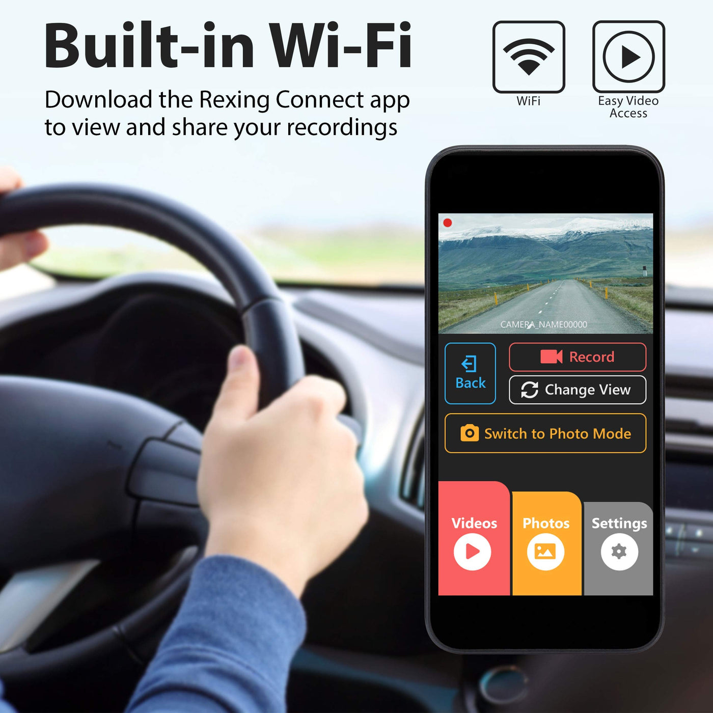 Rexing V1P Pro Dual 1080P Full Hd Front And Rear 170 Degree Wide Angle Wi-Fi Car Dash Cam With Built-In Gps Logger, Supercapacitor, 2.4'' Lcd Screen, G-Sensor, Loop Recording, Mobile App