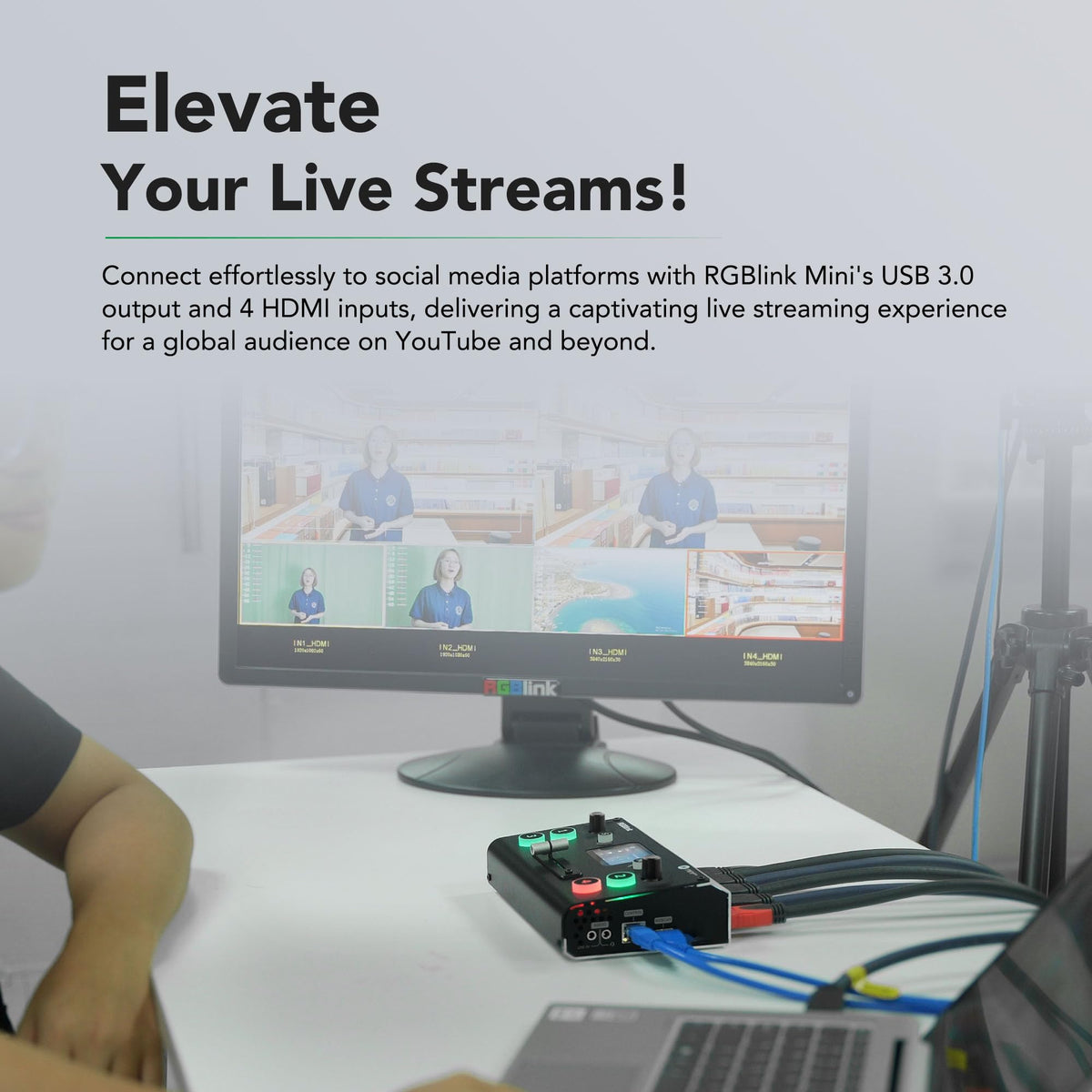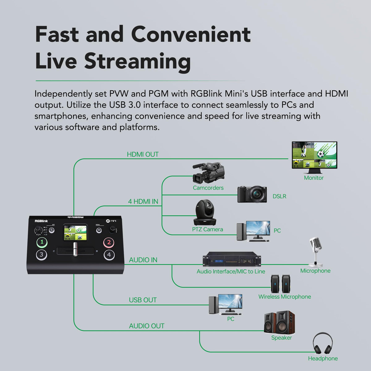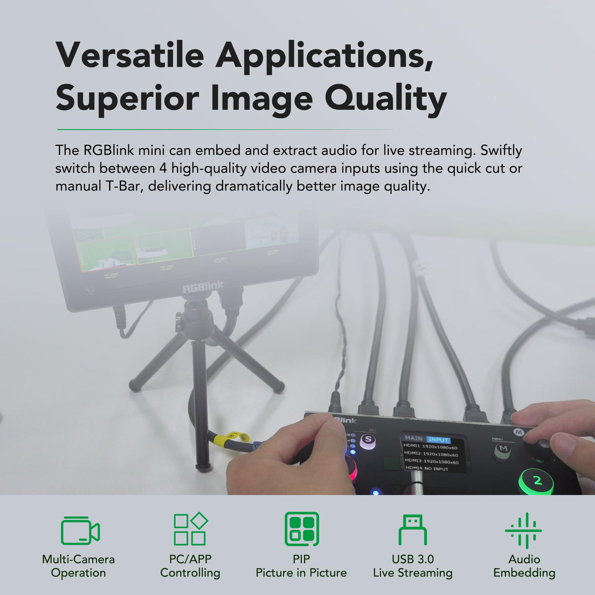 Rgblink Mini Multi Camera Video Switcher 2 Inch Lcd Display 4 X Hdmi Inputs Usb 3.0 Output Video Mixer Multi Format Realtime Pro