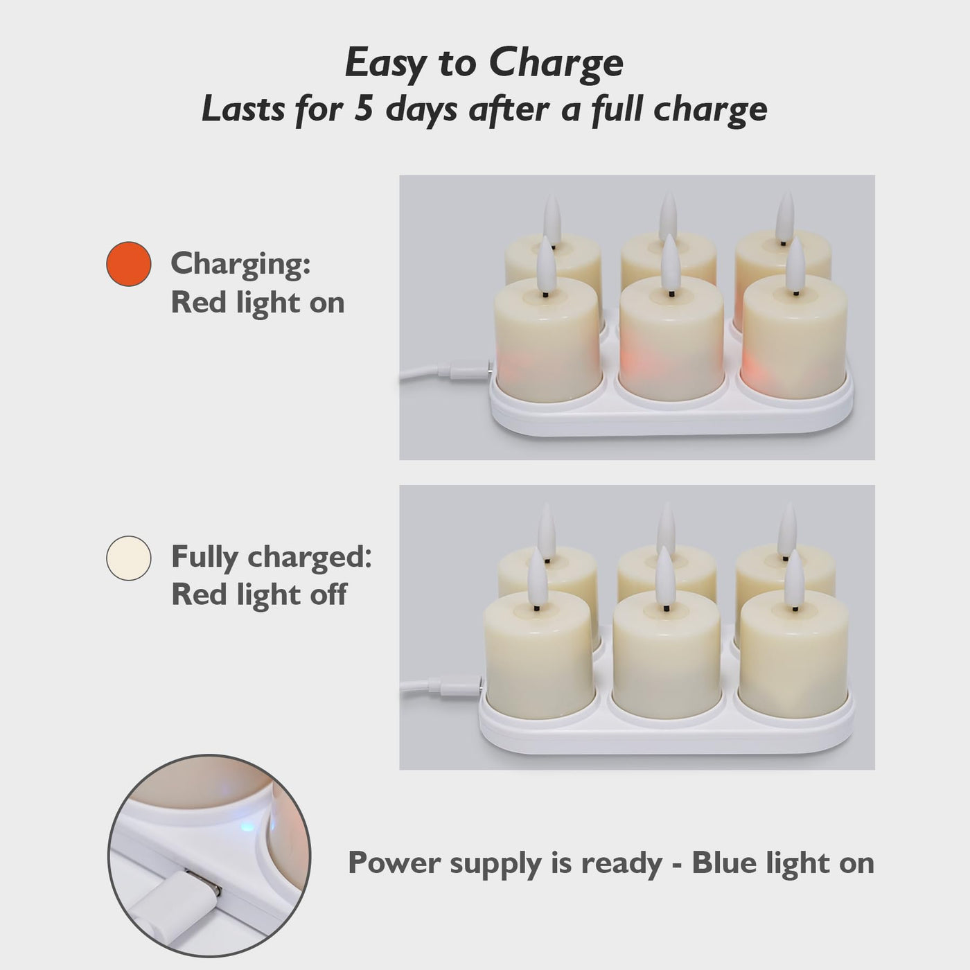 Rhytsing 6 Rechargeable Flameless Votive Candles With Timer For Home Decor, Led Faux Battery Operated Tealight Candles With Char