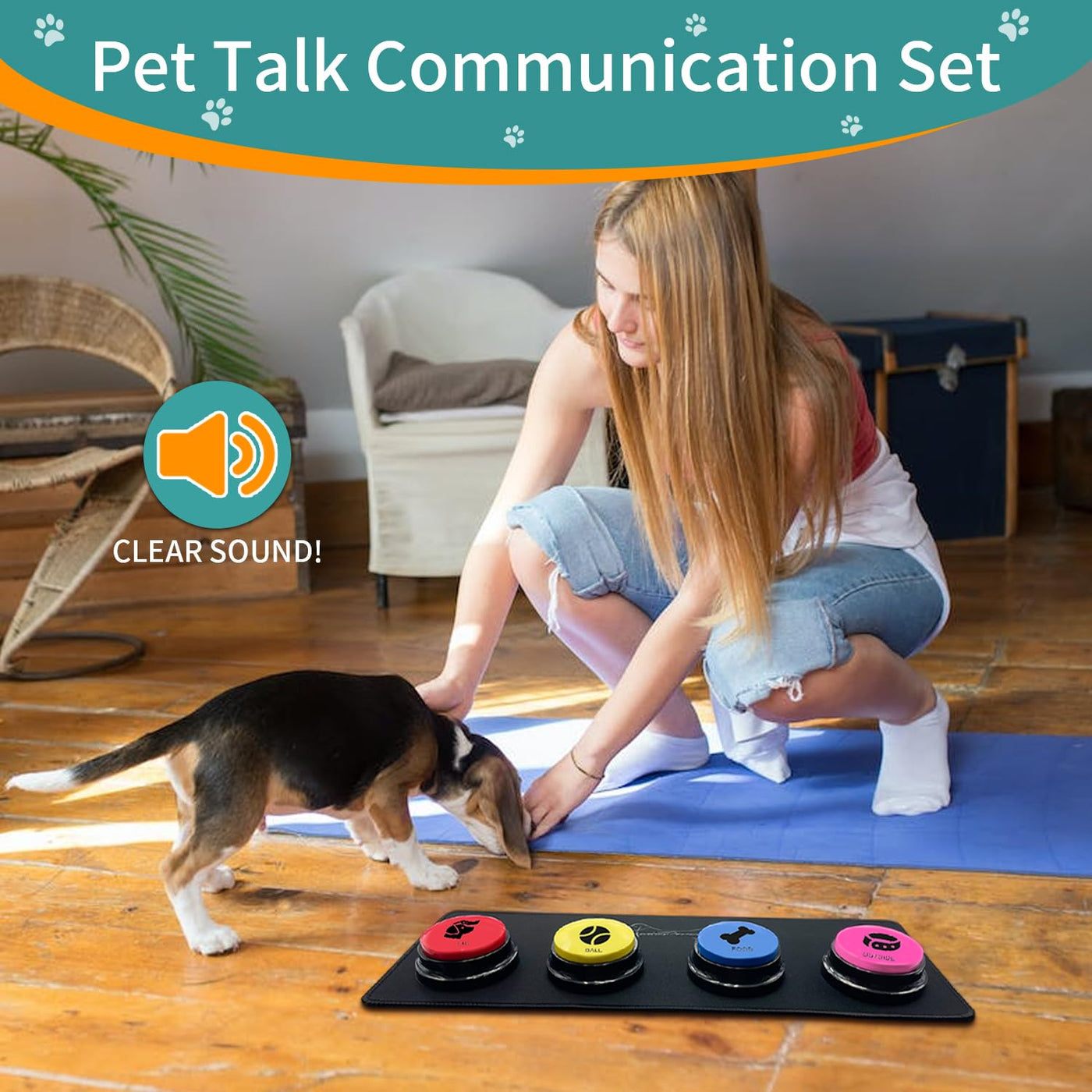 Ribosy 4 Recordable Buttons With Rubber Mat And 25 Stickers Record And Playback Any Custom Message To Teach Your Dog Voice Wha