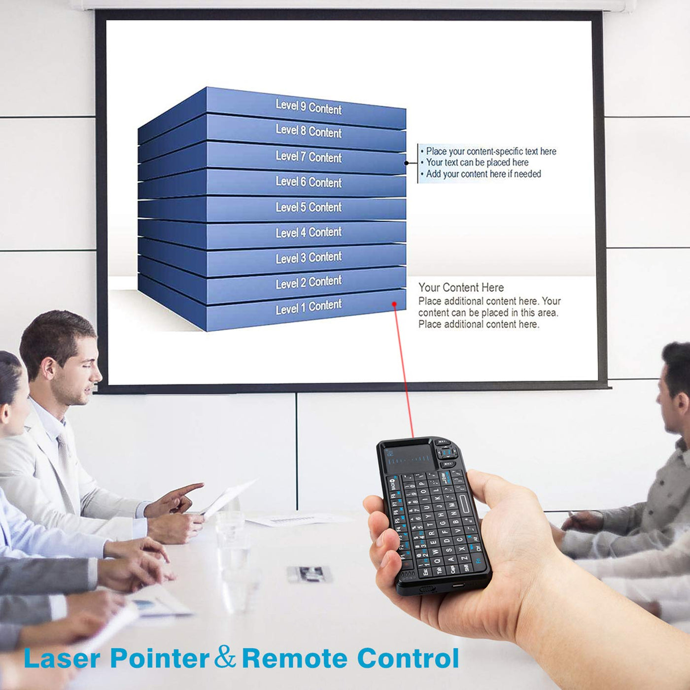 Rii Mini Wireless Keyboard With Touchpad&Qwerty Keyboard,Support Bluetooth &2.4G Connection,Built In Laser Pointer, Backlit Port