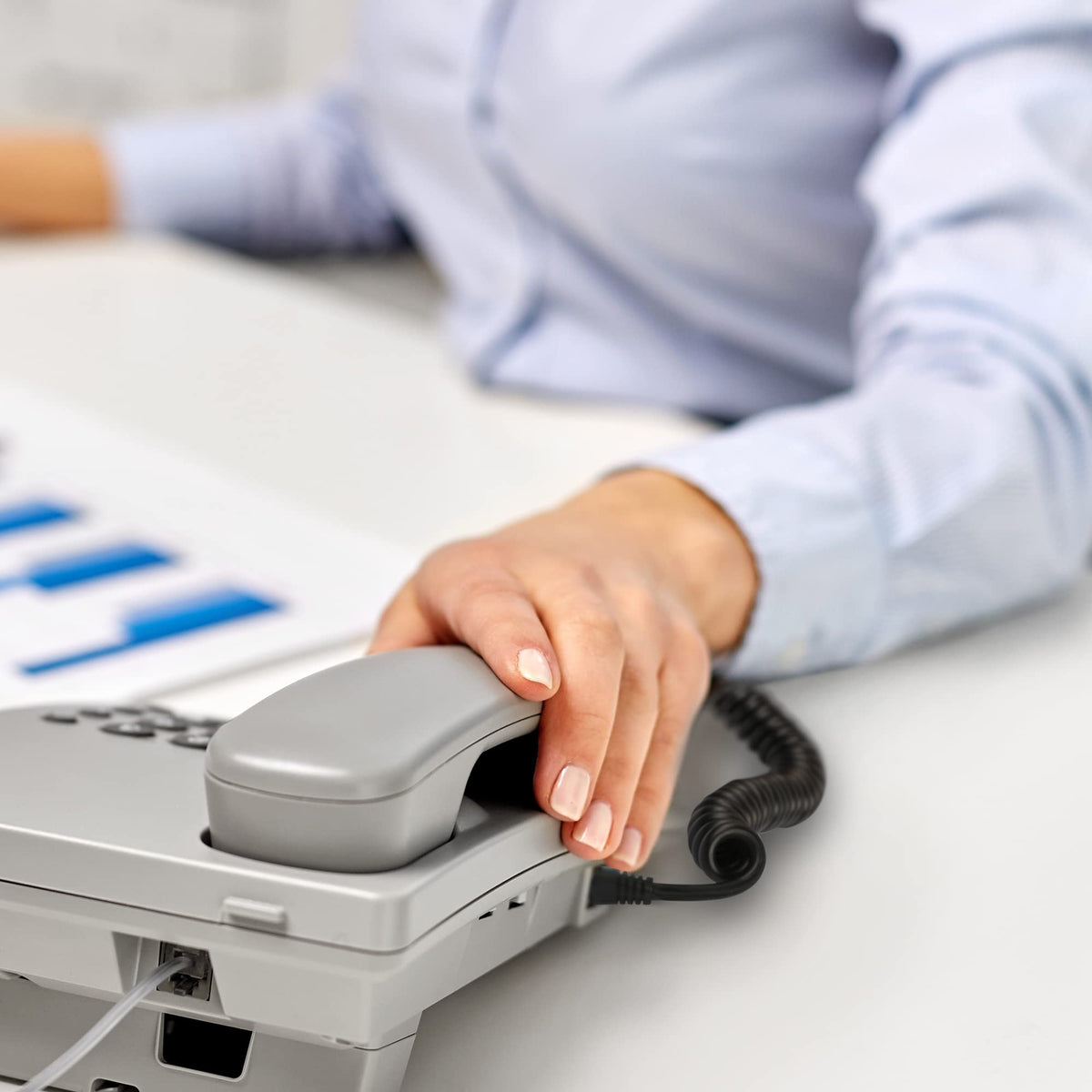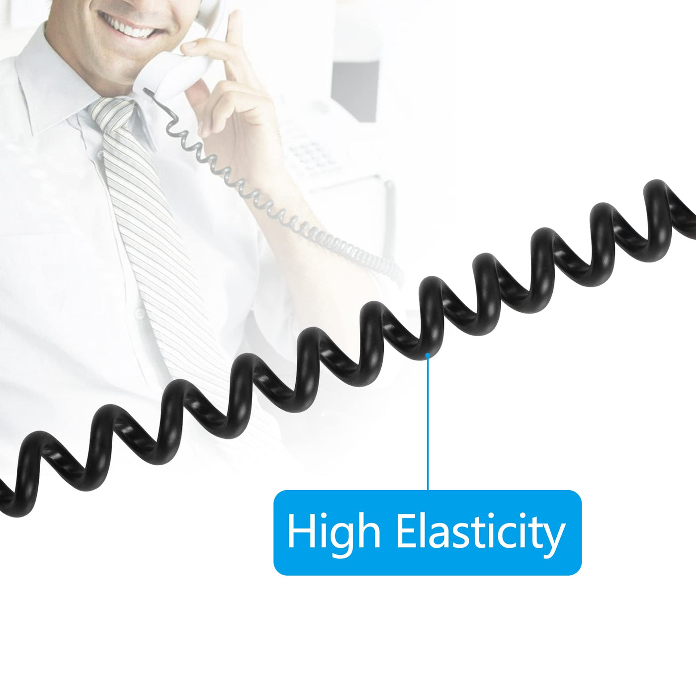 Q: How does the retractable feature of the telephone cord work?A: The RIIEYOCA RJ12 Telephone Cord features an upgraded spring cable design that allows it to easily expand to 1.5m/59in and retract quickly to avoid tangling when not in use.