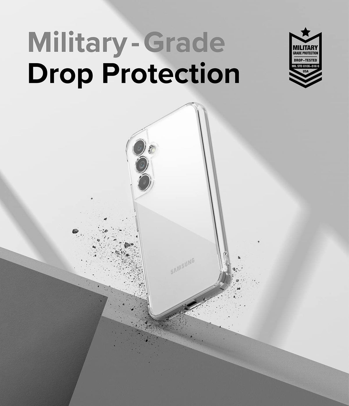 Q: What materials are used in the Ringke Fusion case?A: The Ringke Fusion case is made of a durable hybrid material, combining a polycarbonate transparent back panel with TPU bumper frames for excellent protection and a lightweight design.