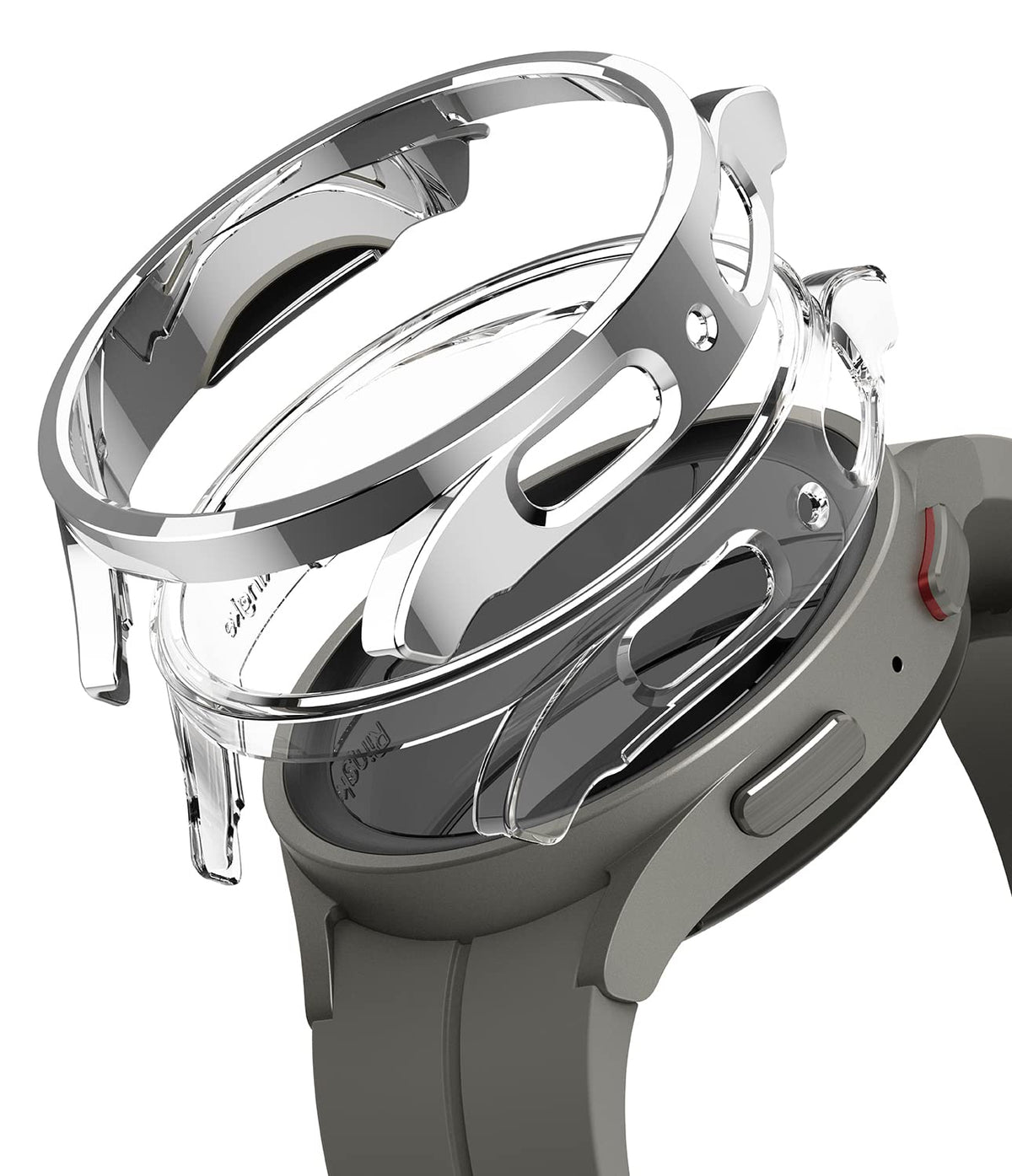 Ringke Slim Anti-Yellowing Material 2 Pack] Compatible With Samsung Galaxy Watch 5 Pro 45Mm Case For Minimalist Yet Sturdy, Solid Transparent Cover + Extra Color For Women, Men - Clear + Chrome