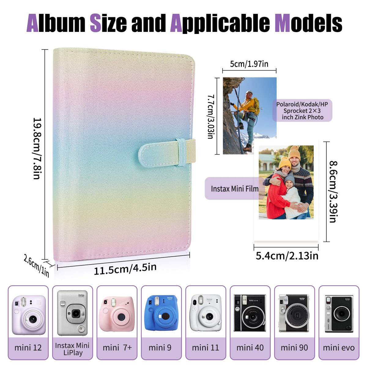 Mini Film Photo Album Fit Fujifilm Instax Mini 12 11 9 25 26 60 7S Hp Sprocket, Kodak Mini 3-Inch Film Shooting Photos, [Pocket Size:3.42X2.16 Inch] Using High-Quality Pu Leather And Transparent Pvc Inner Page Pockets, And Unique Buckle Design, Easy To Open And Adjust, Very Stylish, Strong, Durable, Safefeatures: < Br >The Pocket Is Designed With Side Loading, Put The Photos In, It Is Not Easy To Fall Out, You Can Use It With Confidence, And The Quantity Is Sufficient To Meet Your Needsthe Photo Album Is Made Of Pu Leather, Which Is Waterproof And Can Protect Your The Photos Are Not Damagedthe Photos Are Displayed In The High-Definition Transparent Pocket, And You Can Enjoy The Beautiful Photos By Flipping Through The Album Without Taking It Out Of Your Pocketin Your Free Time, You Can Enjoy It With Your Family Or Friends Admire These Photos To Increase The Distance Between Each Other. You Can Also Put It In Your Home For Decoration, And You Can Also Give The Photo Album As A Present To Your Family And Friends