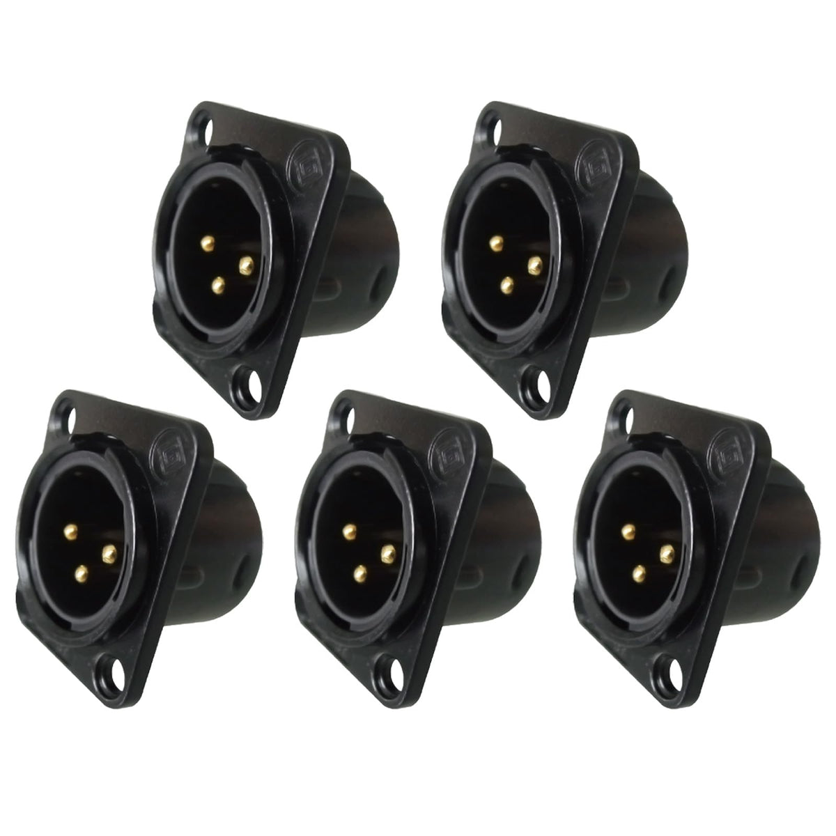 Riviera 5 Pack Xlr 3Pin Male Panel Mount Chassis, Fine Black Nickel Plated Housing With 24K Gold Plated Contacts(5 Pack Black Ma