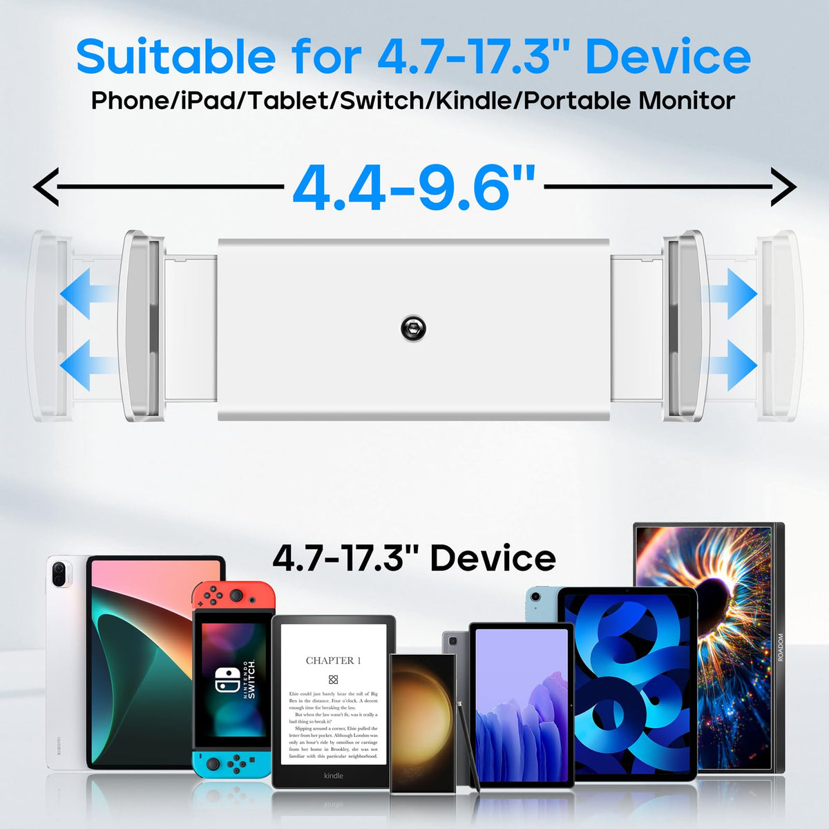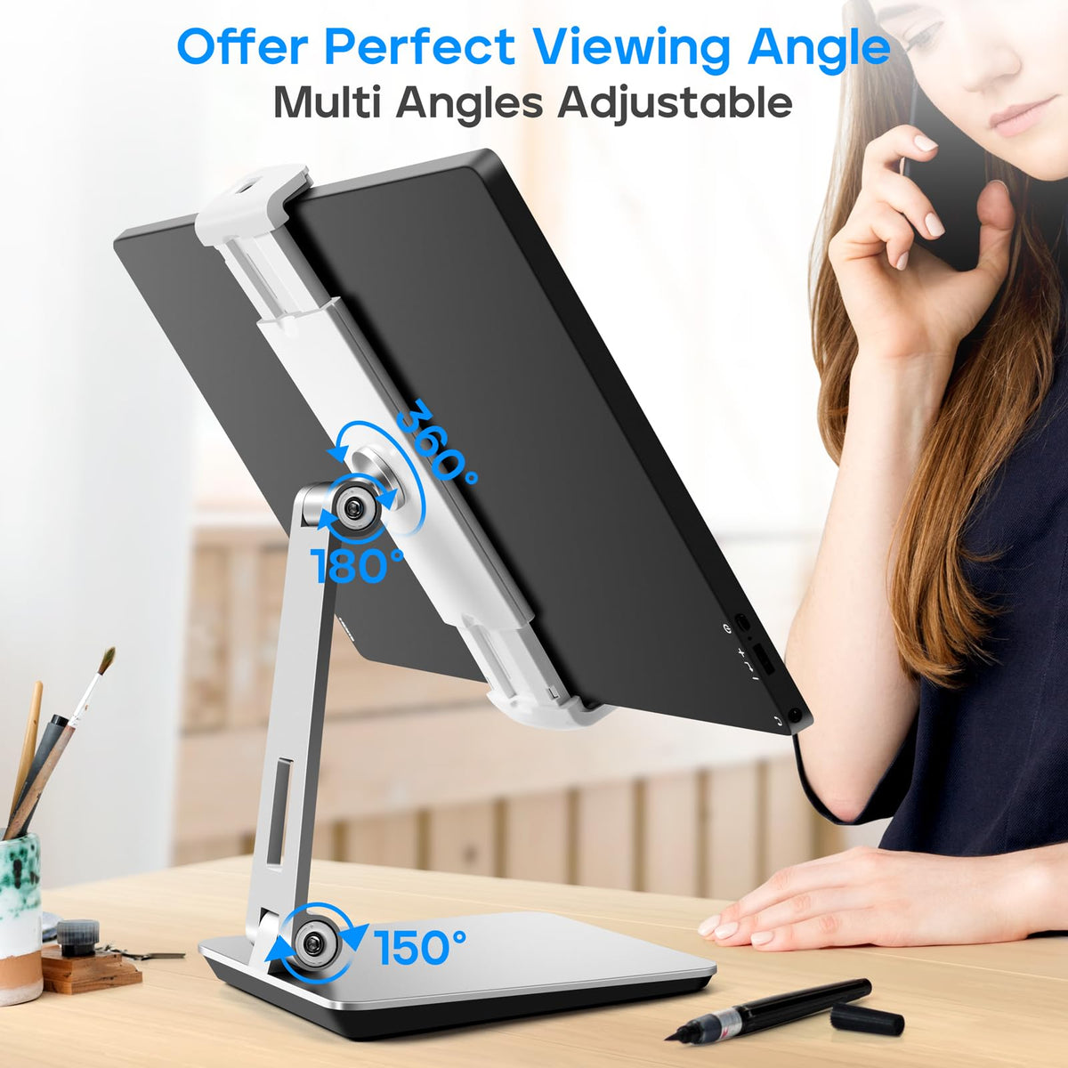 Roadom Tablet Stand For Desk, Adjustable 360 Swivel Bracket, 180 Tiltable Clamp,Foldable Tablet Holder For 4.7 17.3'' Phone/Ipad