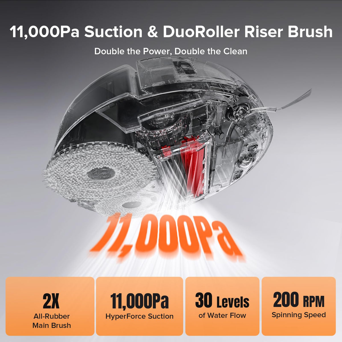 Q: What is the suction power of the Roborock Qrevo Slim Robot Vacuum?A: The Roborock Qrevo Slim features an impressive suction power of 11,000Pa, ensuring maximum removal of dirt, hair, and debris from various floor types, including hardwood, tile, and carpets.
