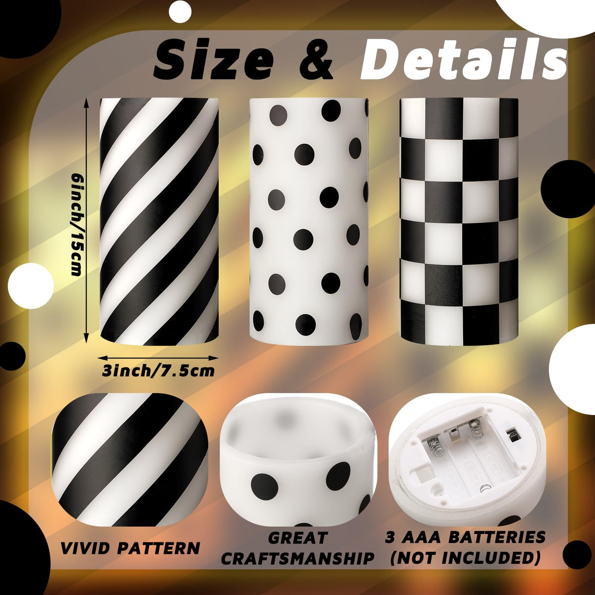 Roceei 3 Pcs Black And White Christmas Flameless Candles Battery Operated Flickering Candles Led Candles Real Wax Pillar Candle