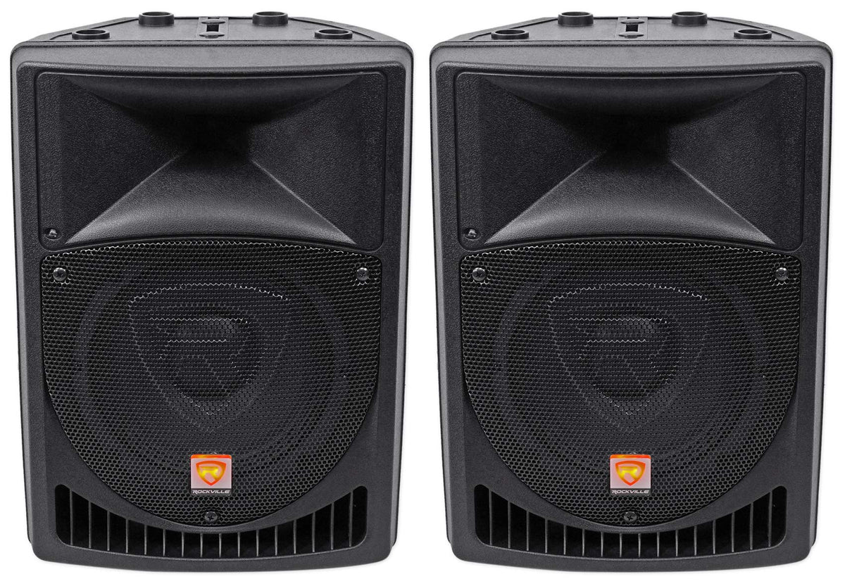 Pair Rockville Power Gig Rpg8 8'' Powered Active 800 Watt 2 -Way Dj Pa Speakers