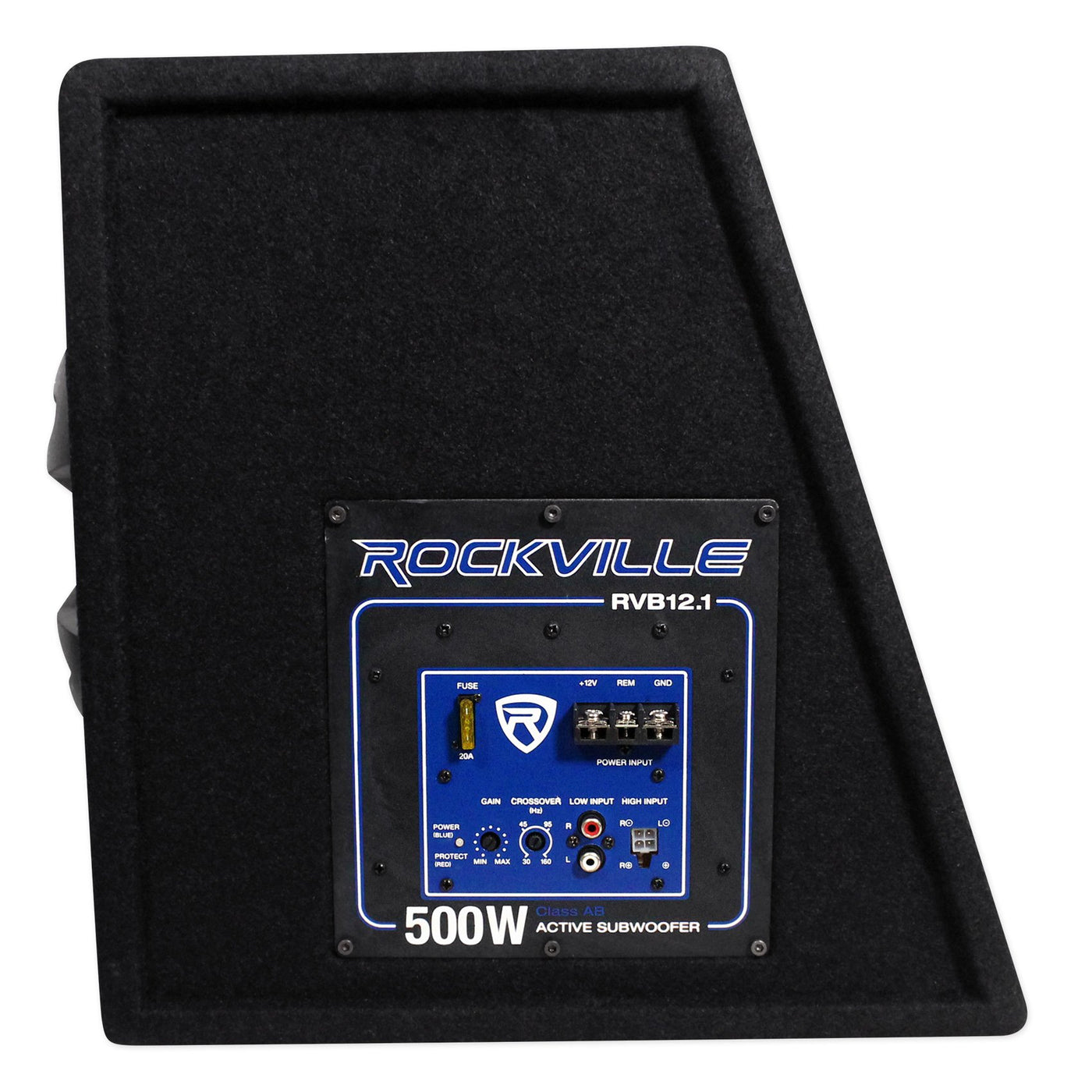 More Bass... Less Spacefast Pace.The Rockville Rvb12.1A Is A 12'' Powered Subwoofer That Gives You Everything You Want Out Of A Car Subwoofer. This Is A Complete System With The Subwoofer, Enclosed In A Box, Along With A Built In Amplifier. This Sub System Will Give You More Bass In Your Car Or Truck, Without Giving Up Tons Of Space To Get It. I'M Sure You Want The Tight Clean Bass Hits That 12'' Subwoofers Are Known To Provide. I'M Sure You Also Want The Ease Of A Quick Installation. With The Rvb12.1A You Will Get It All. You Will Not Have To Do A Separate Amplifier And Woofer Installation. It'S Just One And Done.Our Engineers Used Sophisticated Computer Modeling And Created An Enclosure For A 12'' Woofer That Takes Up Less Than 2.00 Cuft (Actually 1.8 Cuft) And With A 15 Sloped Back The Rvb12.1A Will Fit Snuggly Against The Rear Seat In Your Trunk And Take Up Almost No Room At All. Turbo Tuned With An Aerostyle Port You Will Be Astounded At The Bass Output This Little Bass Enclosure Produces. The Aeroport Is Side Mounted On The Enclosure So The Low Frequencies Get A Chance To ''Load'' In To Your Car Trunk And The Bass Waves Get A Chance To Fully Develop Before Entering The Passenger Compartment. We Are Talking About Low Bass Frequencies That You Can Actually Feel. In Most Cases Packaged Systems Put Out Weak Bass That Is Not Deep. Our Rockville Subwoofer Was Engineered And Tuned To Put Out The Bass You Can Feel!Powered By A Powerful Built In Class Ab 300 Watt Rms Amplifier The Rvb12.1A Will Keep You Rocking With Clean Power. We Also Eliminated Air Or Mechanical Noises That You Do Not Want To Hear. This Model Features An Electronic Low Pass Crossover That Is Fully Adjustable So That You Can Customize It For Your Car'S Listening Environment (Though We Recommend Keeping It At That Low 45-60Hz Range).