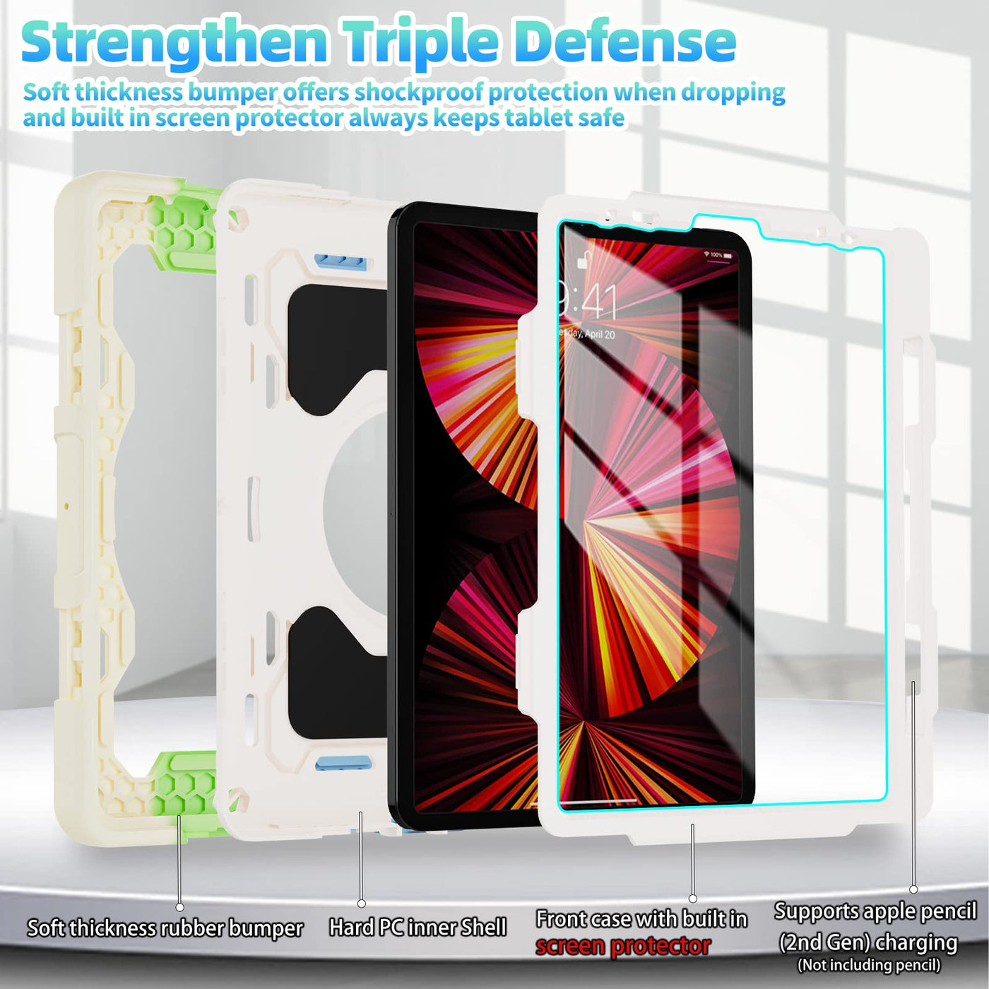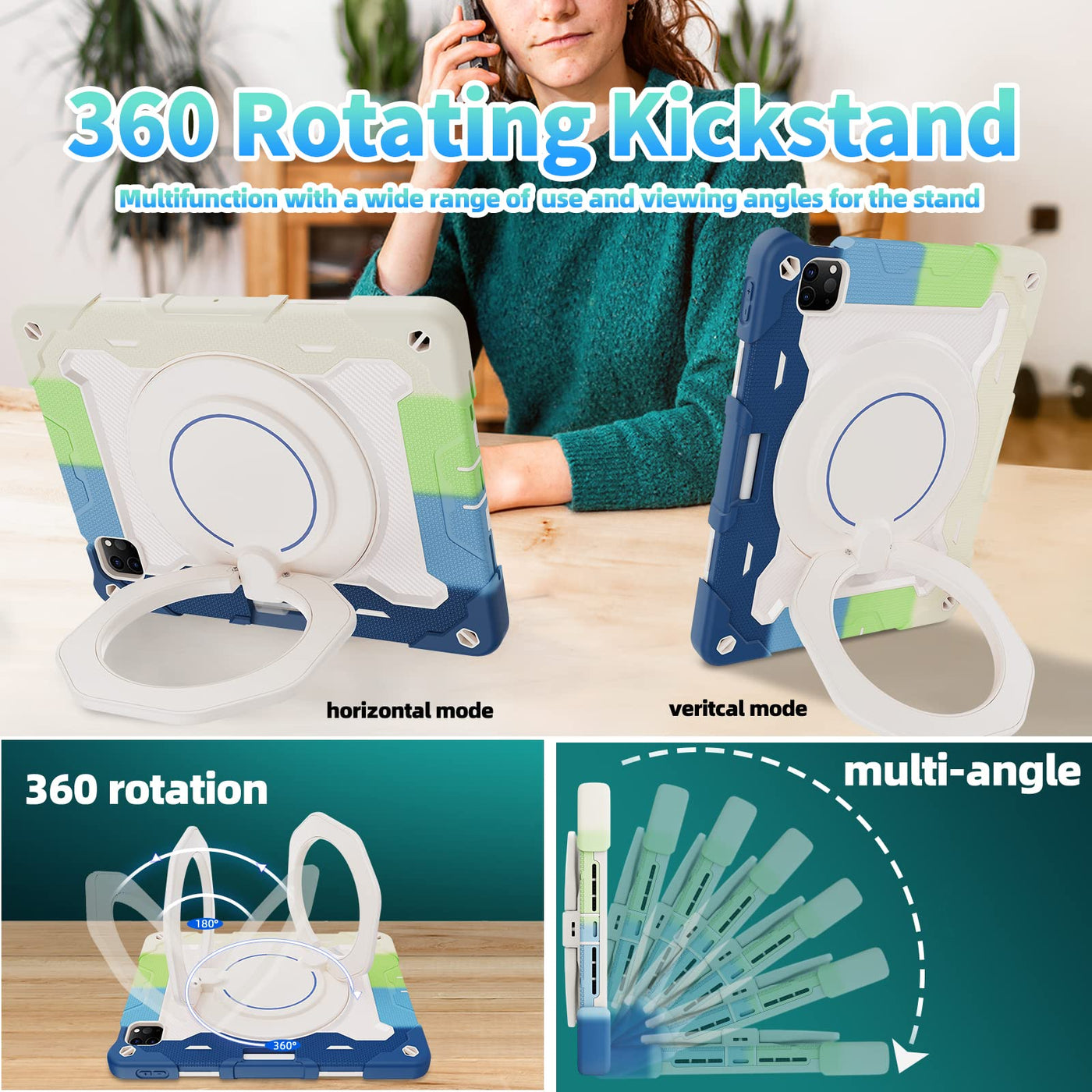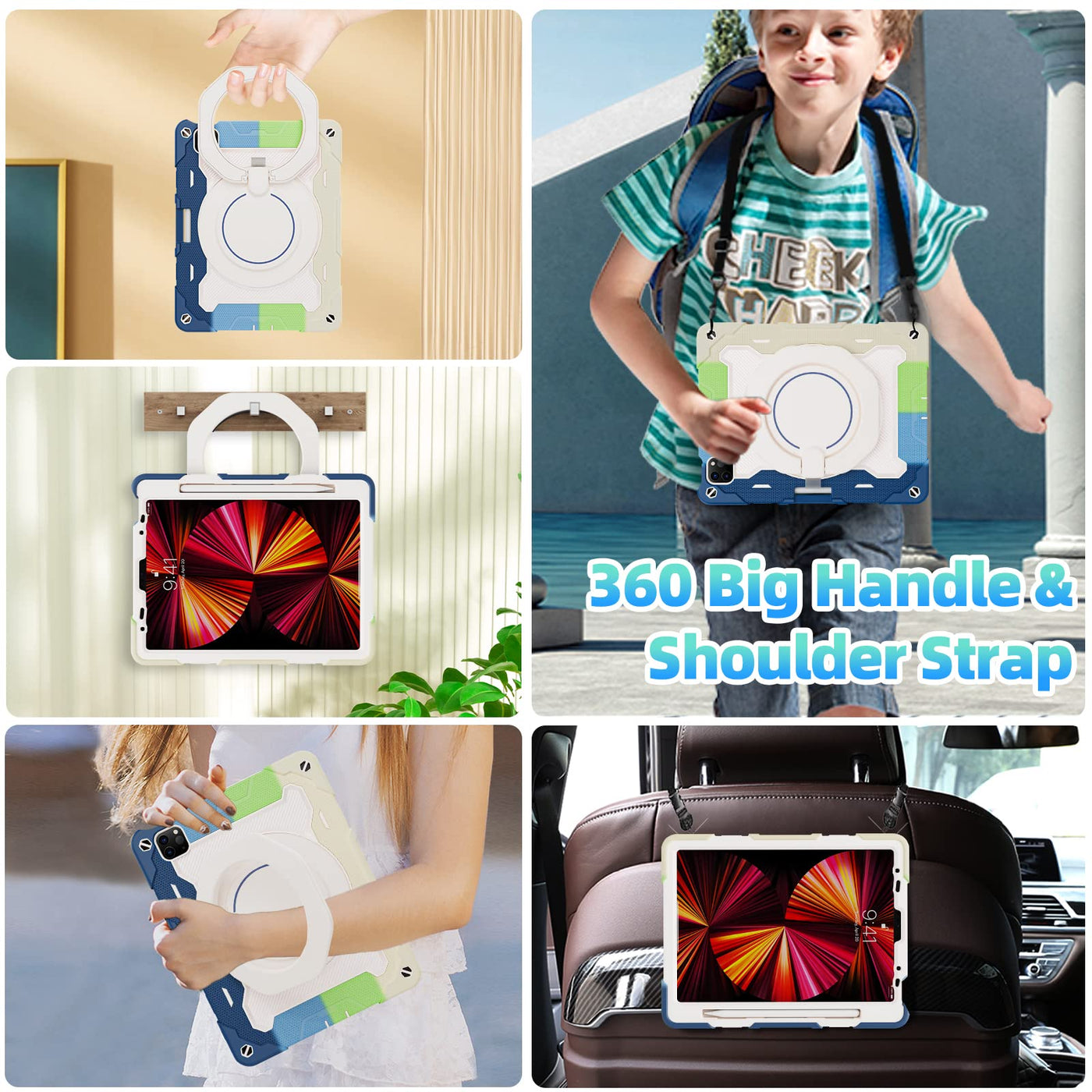 Fits ?Ipad Pro 11 Inch Case 4Th Generation(2022 Release) ?3Rd Generation (2021)? 2Rd Generation (2020)? 1St Generation (2018) And ?Ipad Air 10.9 Inch Ipad Air 5Th Generation (2022) ?Ipad Air 4Th Generation( 2020) | [Advanced Silicone Material Enhanced Drop Protection] Upgrade Shock-Absorbing Ipad Pro 11 & Air 5Th/4Th Gen Silicone Shell With Air-Guard Corners And Shock-Absorbing Silicone To Protect Ipad 11 & 10.9 Inch Case From Drop, Shocks, Impacts And Scratches During Hit Against Floor And Daily Use Situation, Ensure Offer Drop Protection Truly, Also Particle Full Around On Silicone Increase Comfortable And Anti-Slip Function When In Use | [3-Layer Full Body Protection With Built In Hd Screen Protector] Built In Hd Screen Protector, Enhance 3-Layer Construction Design,Unique Super Thick Shock-Absorbing Ipad Pro 11 & Air 5Th/4Th Generation Silicone Shell Exceed 2X Military Grade Drop Test Standard [Mil-Std 810G-516.6], Be Sure To Offer Strongest Protection, Against Any Sudden Drop, Shock And Knocks, Safe For Kids. Additional Built-In Upgrade Sponge Technology Adds Extra Heat-Dissipation | [Multiple Angles Of Kickstand/Magic Kickstand & Handle] Upgrade 360 Rotating And Foldable Kickstand Provides Angle Between 20-75 Degrees Of Horizontal (Landscape) Or Vertical (Portrait) Orientation For Your 11 Ipad Pro & Ipad Air 5/4 Tablet. Also Offers Hand Hold And Hung On Wall Using By Handle Function, Allow You Use Or Carry Much Easier, Meet Your Every Needs, Match Up All Kinds Of Group Perfectly Such As Kids/Man Women/Senior People/Architect/ Painting Enthusiast/ Warehouse Operator Ect | [Adjustable / Detachable Shoulder Strap & Pencil Holder] Equip With 59 Inches Adjustable And Detachable Shoulder Strap Assure No Matter Where You Go, Carry It Up With Maximum, Totally Relieve Your Hands, Also Can Hung On The Back Seat In Car, Create A Mini Movie Theater For Your Kids. Designed With A Pencil Holder On Back Easily To Carry It With Your Pencil (12 Months Warranty,No Including Pencil)