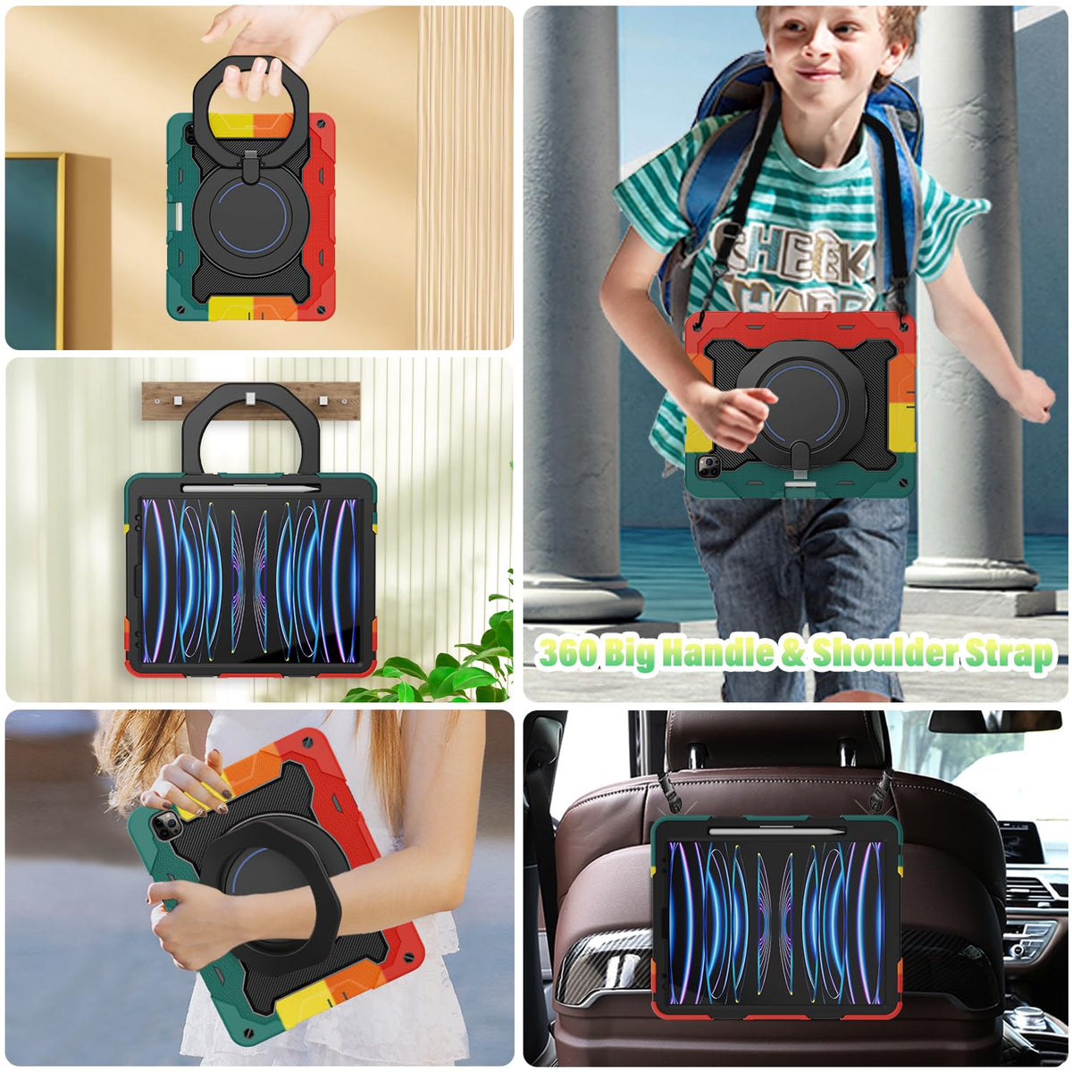 Roiskin For Ipad Pro 12.9 Inch Case (6Th, 5Th, 4Th & 3Rd Gen)With Hd Screen Protector, 360 Stand, Handle, Pencil Holder,Shoulde