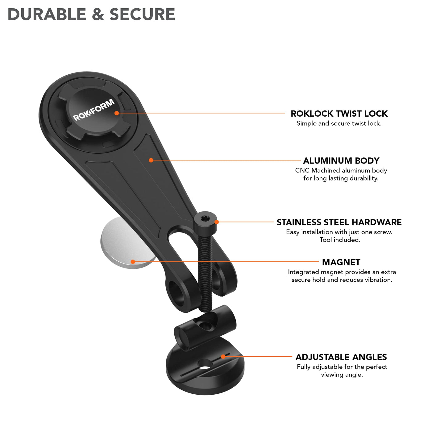 Secure: Dual Retention Twist Lock And Magnetic Mount Keeps Your Phone Secure | Adjustable: Adjusts To Almost Any Angle For The Perfect View Of Your Phone | Universal: Fits Most Bikes With 1 1/8'' Steer Tube | Low Profile: Lightweight Aircraft Aluminum Construction Adds Striking Detail To Your Bike | Easy: Easy To Use, Install And Even Transfer Between Bikes