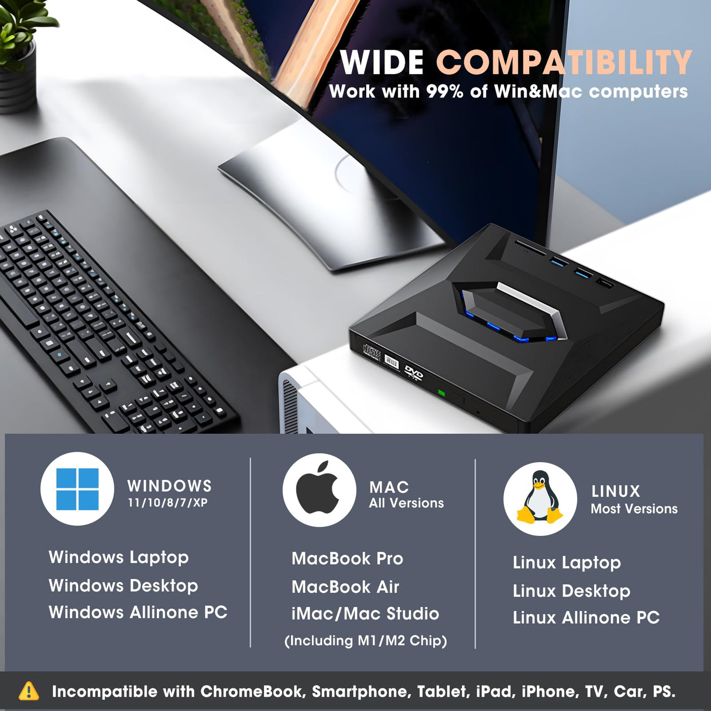 Roofull B21-Y: Ditch The Disk Drive Dilemma - Your Laptop'S Ultimate Cd/Dvd Drive Say Goodbye To The Limitations Of Your Laptop'S Internal Cd/Dvd Drive And Embrace The Convenience And Functionality Of The Roofull B21-Y! This Versatile External Cd/Dvd Drive Is Your One-Stop Solution For Everything Disc-Related: Play Classic Cds & Dvds: Relive Your Music Collection Or Watch Old Movies, No Matter The Format (Cdr/Rw, Cd-Rom, Dvdr/Rw, Dvd-Ram, Vcd, Svcd). Burn Memories Onto Discs: Create Personalized Cds And Dvds For Friends And Family, Or Back Up Important Files For Safekeeping. Effortlessly Convert Discs To Digital: Preserve Your Collection And Free Up Space On Your Laptop With Cd To Computer Transfer And Convert Cd To Digital Capabilities. Transform Your Laptop Into A Disc Powerhouse: This External Cd Burner For Laptop Doubles As A Pc Disc Drive And Dvd Ripper, Letting You Burn Cds, Rip Dvds, And Transfer Files With Ease. Plug-And-Play Simplicity: No Driver Installation Needed - Just Connect The Disk Reader Via Usb 3.0 And Start Using It With Any Laptop (Mac, Windows, Chromebook). Boost Your Productivity: Connect Multiple Devices And Transfer Files With The Built-In External Cd/Dvd Drive Usb 3.0 Portable R/W For Pc, Featuring 1* Usb 3.0 Port, 1* Usb 2.0 Port, 1* Usb Type-C Port, And 1* Sd Card Slot. Portable Perfection: Slim And Lightweight Design With Anti-Skid Features Makes This External Disk Drive The Perfect Travel Companion. Quiet Operation & Strong Error Correction: Enjoy Reliable Performance With Minimal Noise And Data Protection. Wide Compatibility: Works With Windows Xp, 2003, 11, 10, 8, 7, Vista, Linux, And Mac Os X. Embrace The Disc-Tastic Future With The Roofull B21-Y! Order Yours Today And Unlock A World Of Possibilities: Cd To Usb And Cd To Usb Converter Made Easy Computer Cd Drive External That Goes Anywhere Dvd Burner Ready For Action Cd For Computer Without Limitations Disk Drive For Laptop That Expands Your Options Cd Burner For Pc Or Cd Burners For All Your Needs Disk Reader For Pc That Plays It All Pc Optical Drive Reborn Don'T Compromise On Speed Or Performance. Choose The Roofull B21-Y And Get The Ultimate External Drive For All Your Disc-Related Requirements. Additional Details: Cd Drive For Pc Or Cd Reader For Laptop - The B21-Y Is Your Versatile Solution. Disk Drive For Pc On The Go - Slim And Portable For Travel. Computer External Components That Simplify Your Life. Optical Drive For Pc Reborn - Play, Burn, Convert & More. Order Your Roofull B21-Y Today And Rediscover The Power Of Discs!