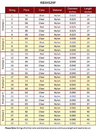 29 Dupont Tynex Hard Nylon Monofilament Strings Of Different Gauges. Strings Are Color Coded In Red, Blue And Clear To Make It Easier To Play. This String Set Fits Our Ems 29 String Gothic Harp (Hgh29).