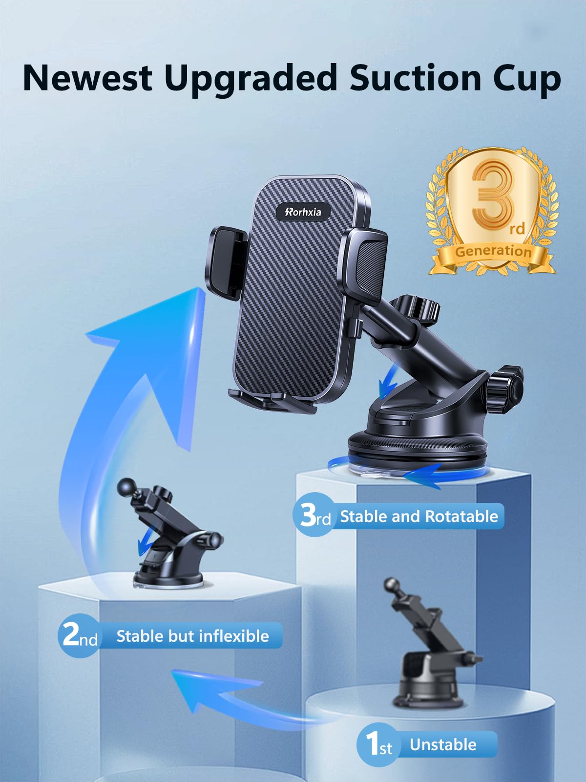 Rorhxia [2025 Most Stable & Flexible Suction Cup] 3-In-1 Car Phone Holder, Cell Phone Car Mount Fit For Vent/Dashboard/Windshiel