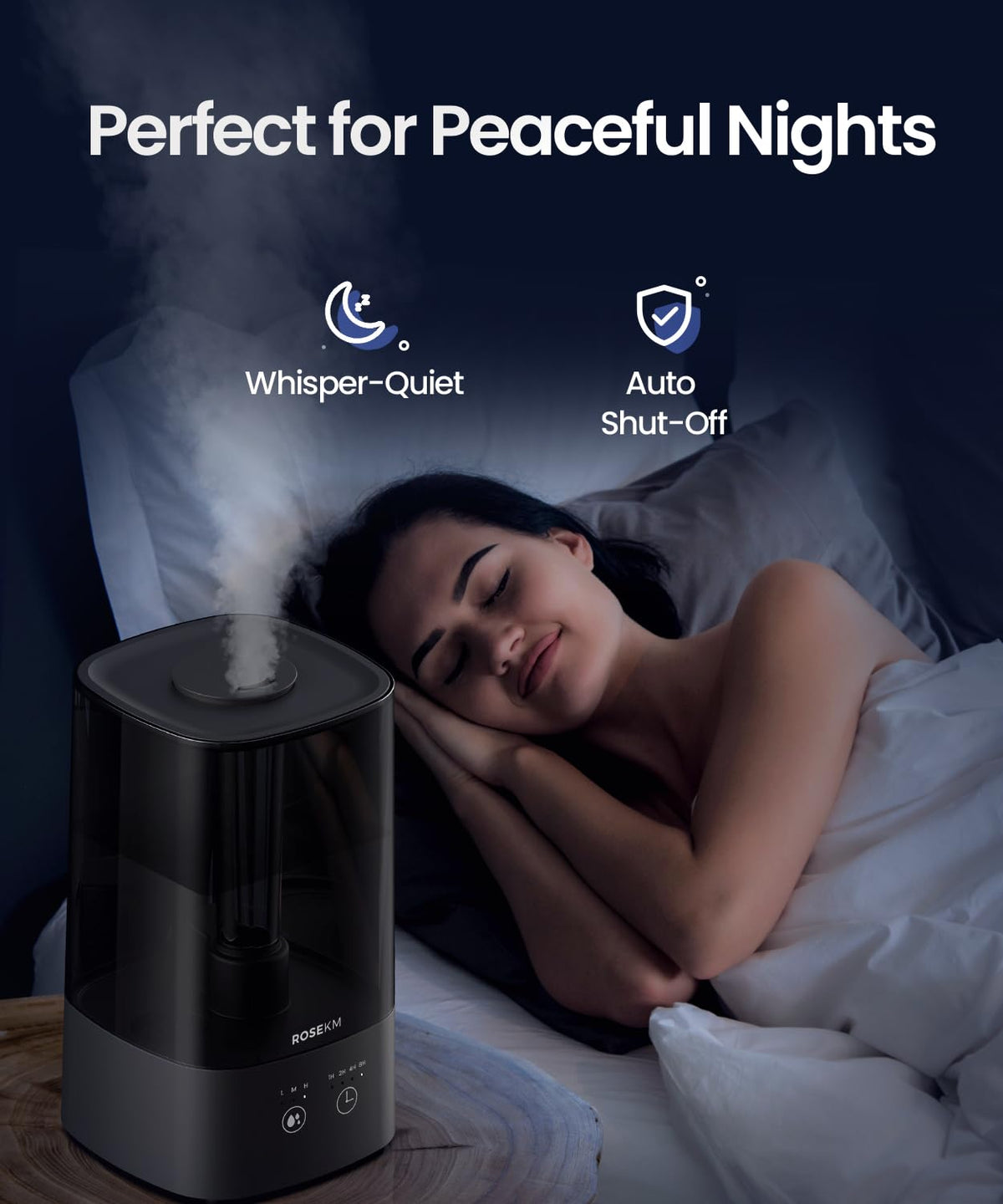 Rosekm 4.5L Humidifiers For Bedroom, Humidifiers For Home Large Room, Cool Mist Humidfiers For Baby And Plant With Timer, Adjust