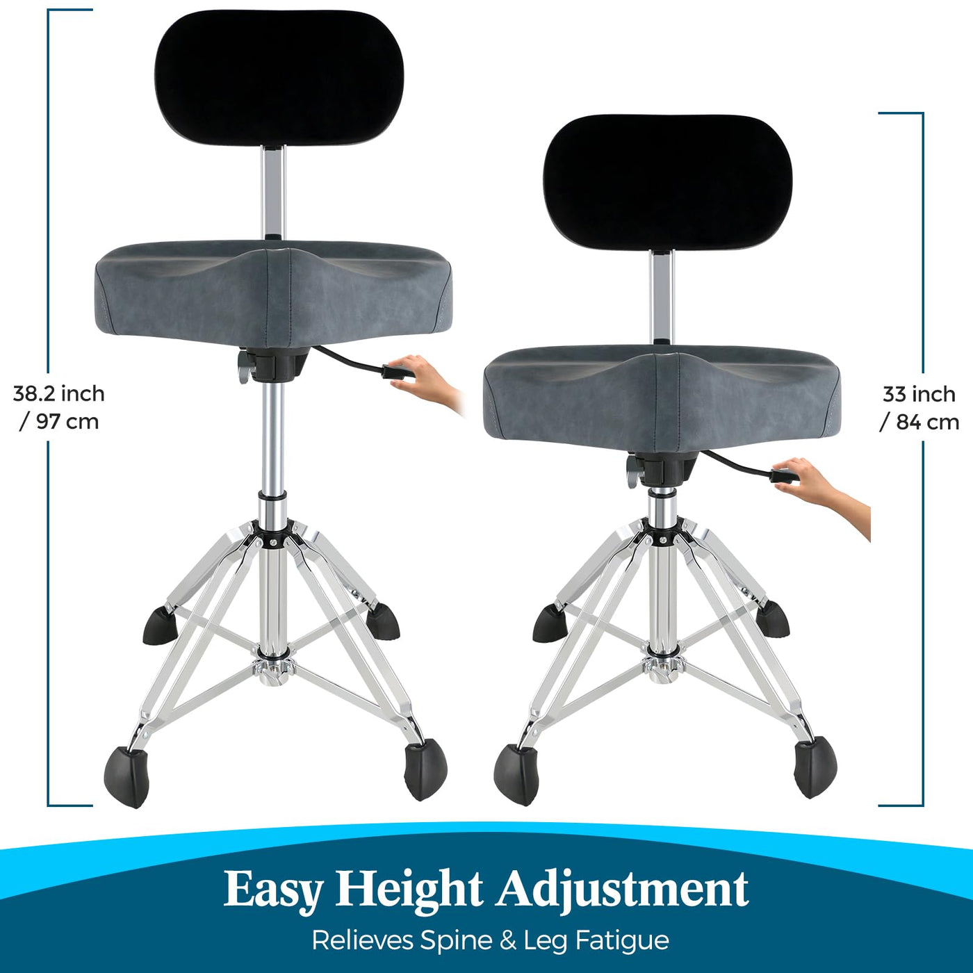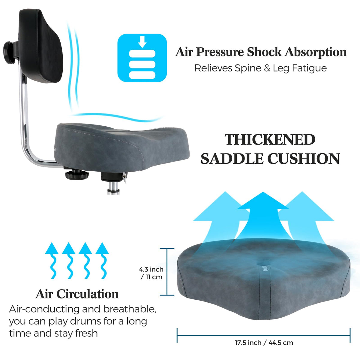 Rowell Drum Throne With Backrest Hydraulic Drum Stool Height Adjustable Airlift Drum Thrones 4 Leg Heavy Duty Drum Seat 4.3 In T